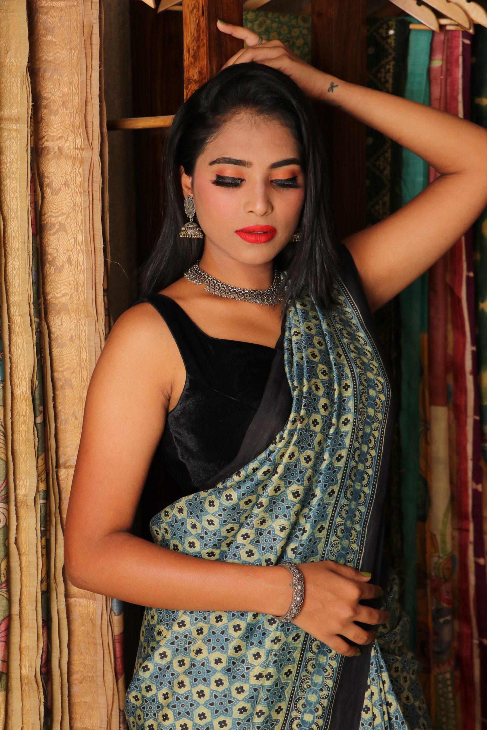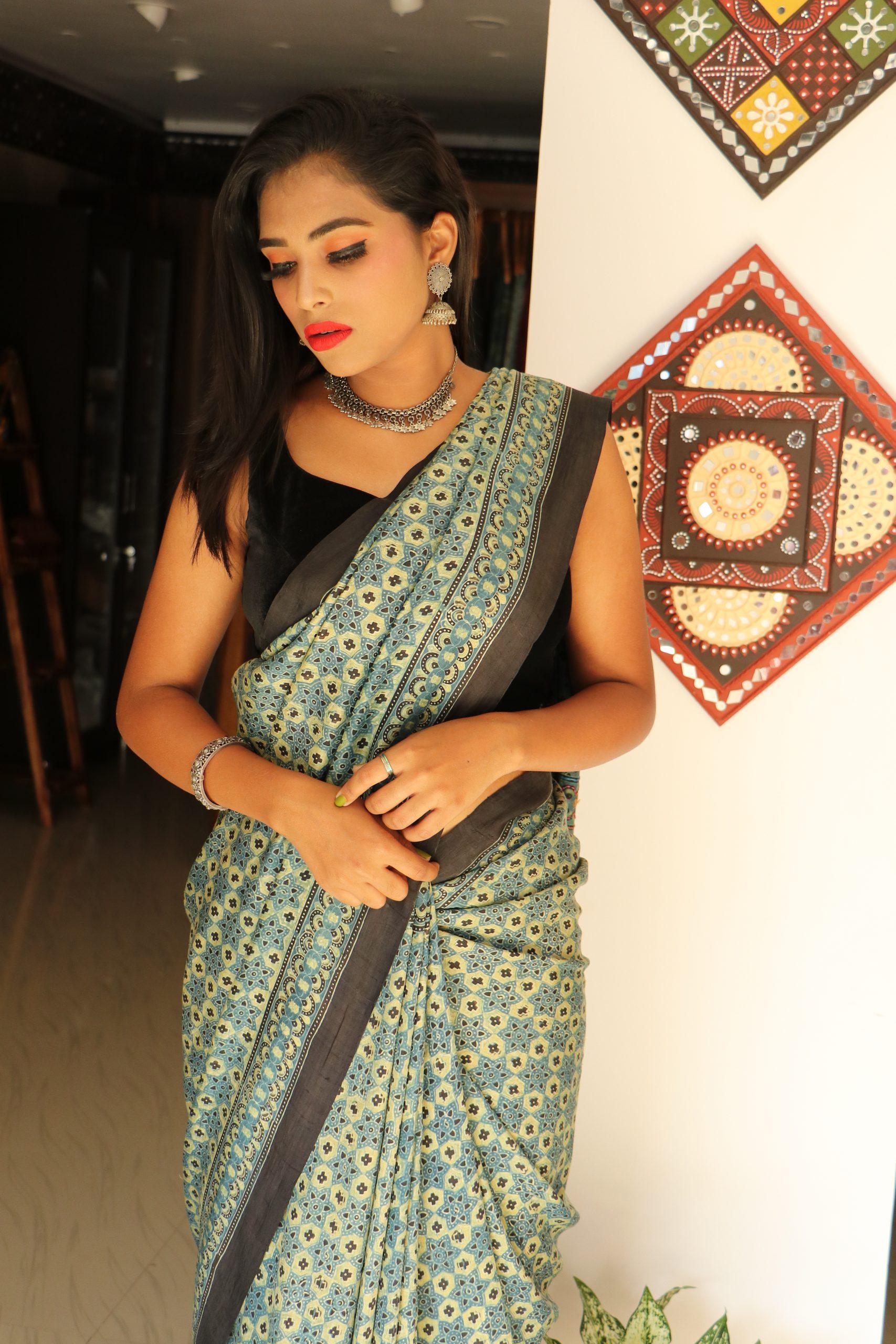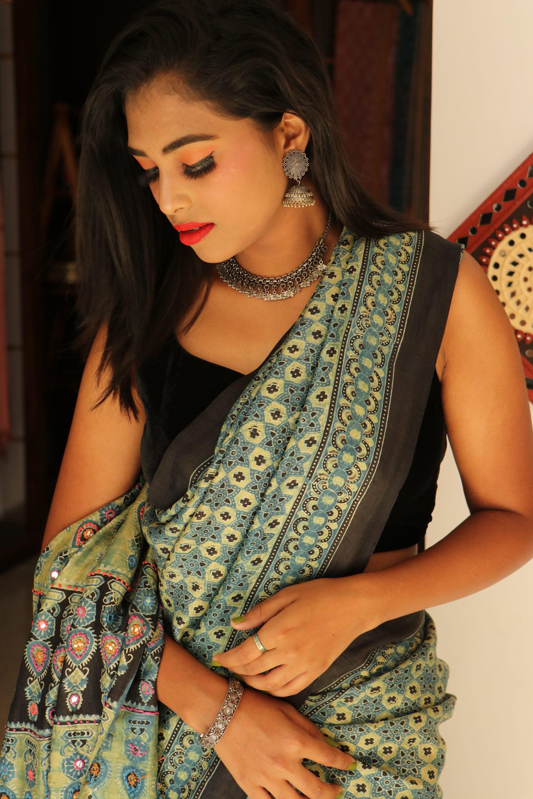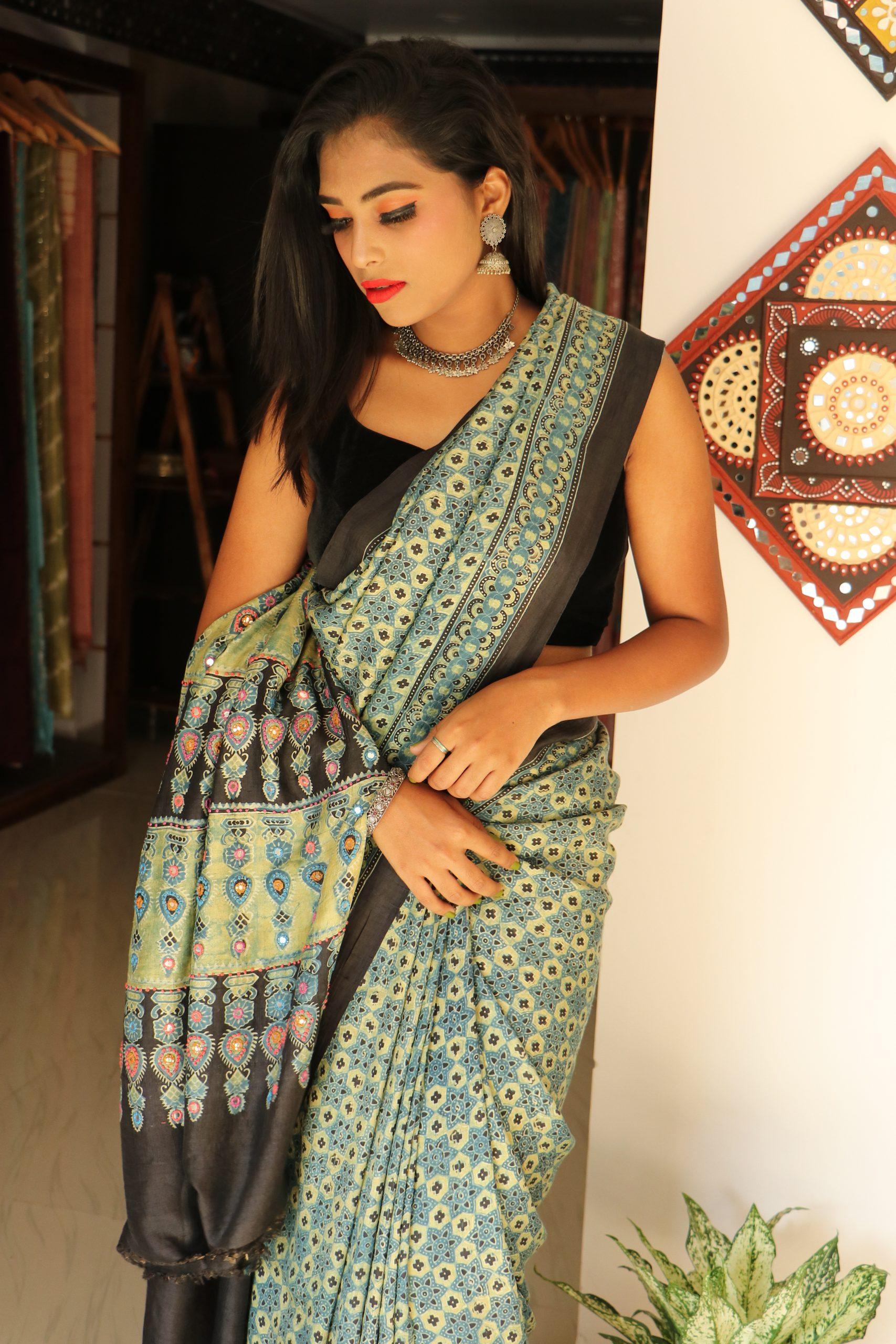 AJRAKH Tussar Silk with KUTCH work