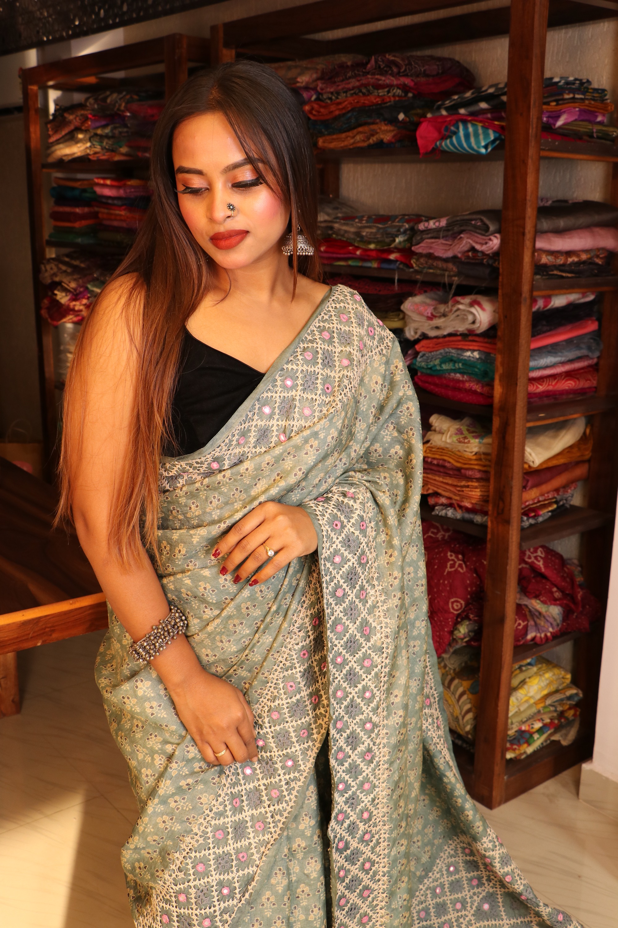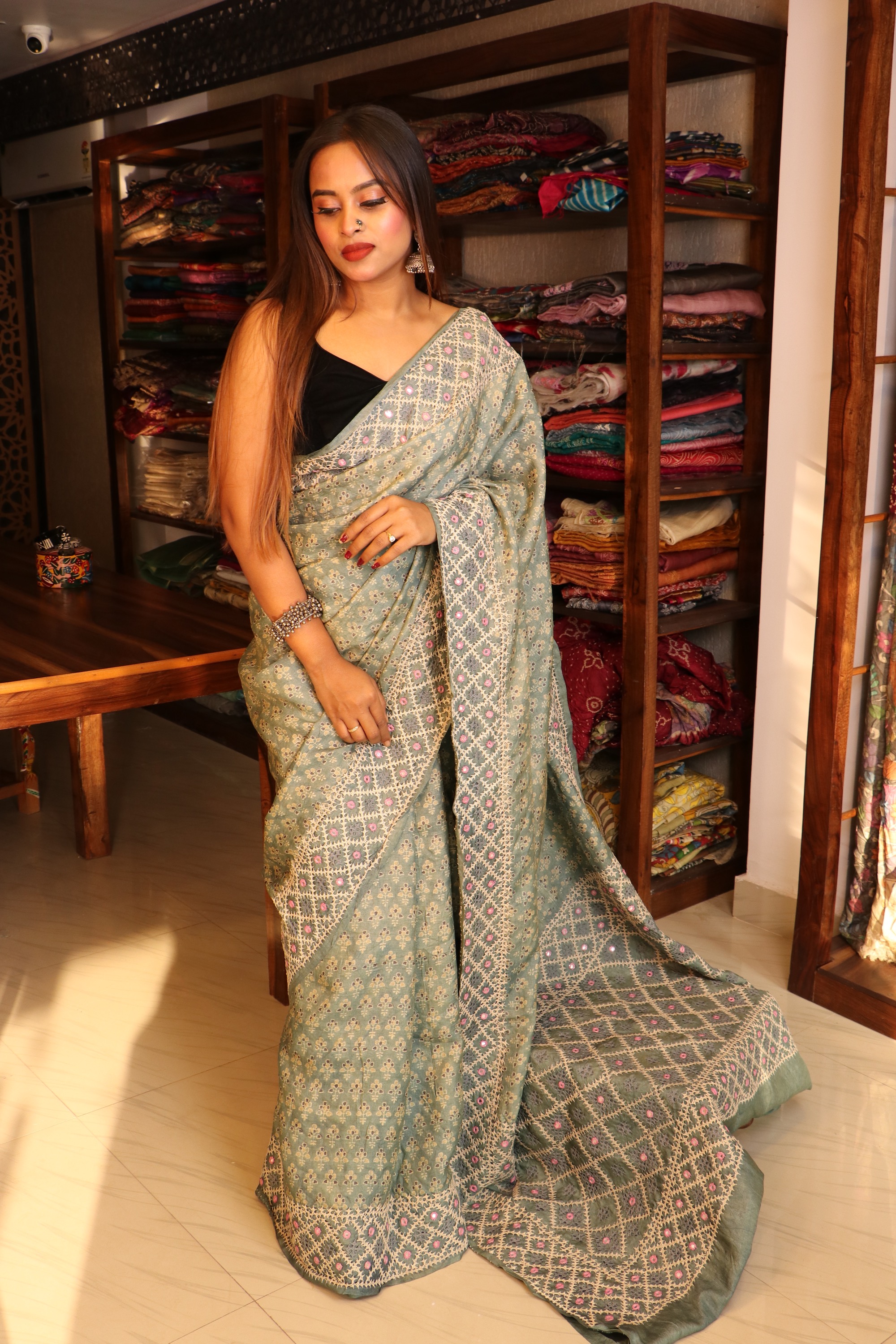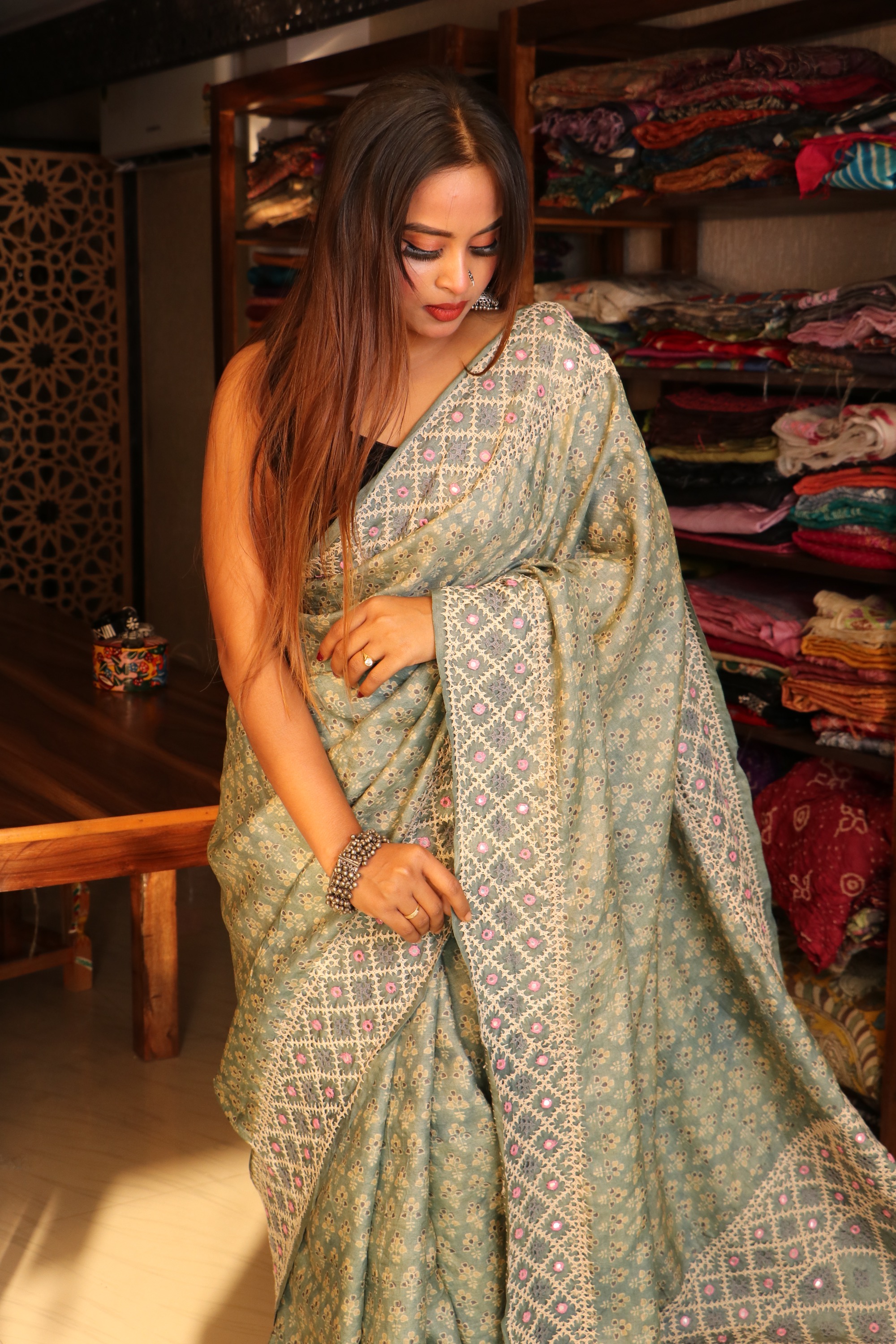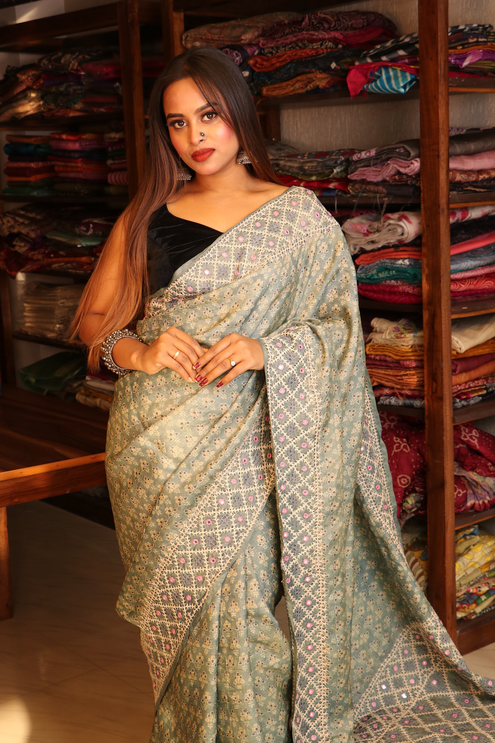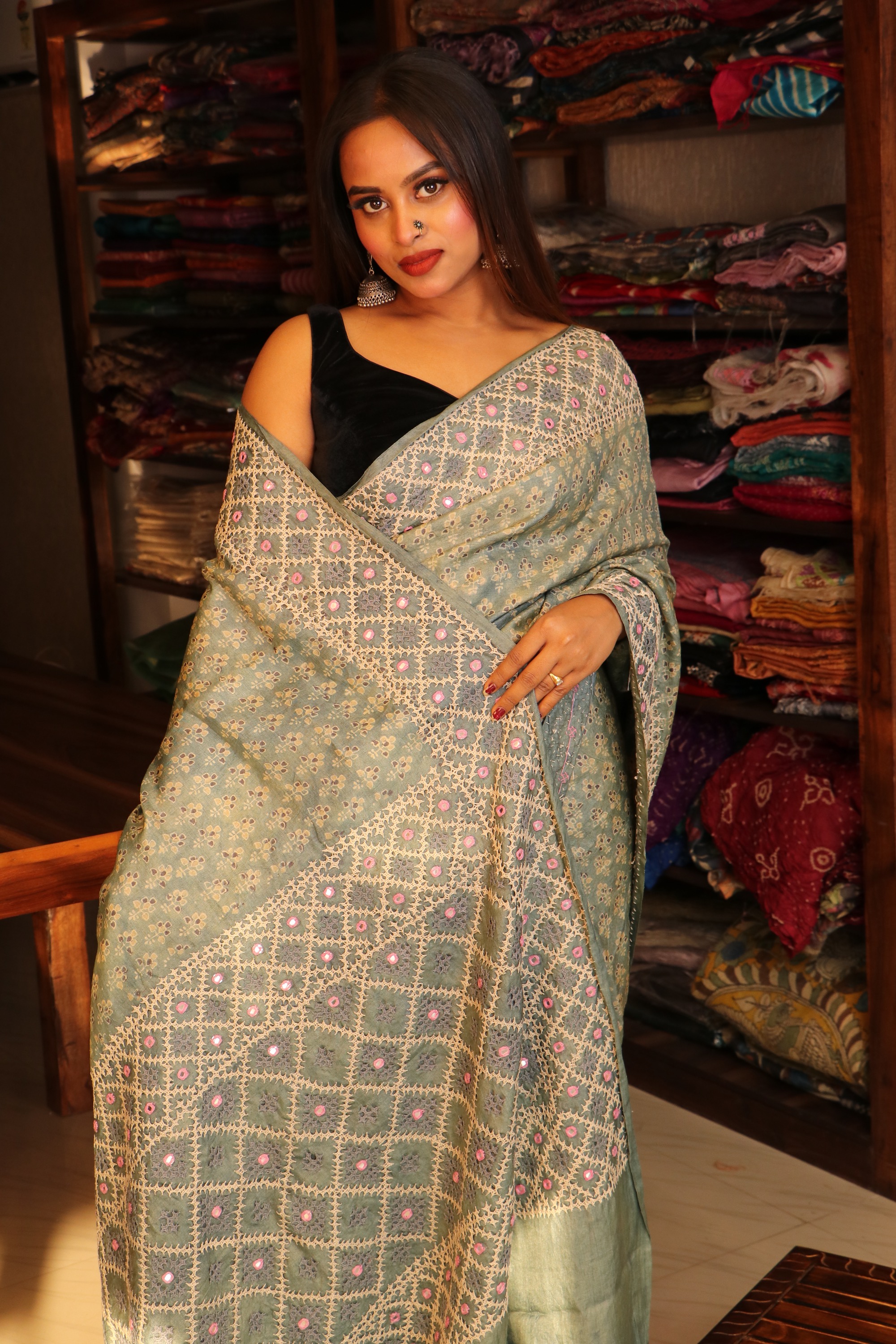 AJRAKH Tussar Silk with KUTCH work