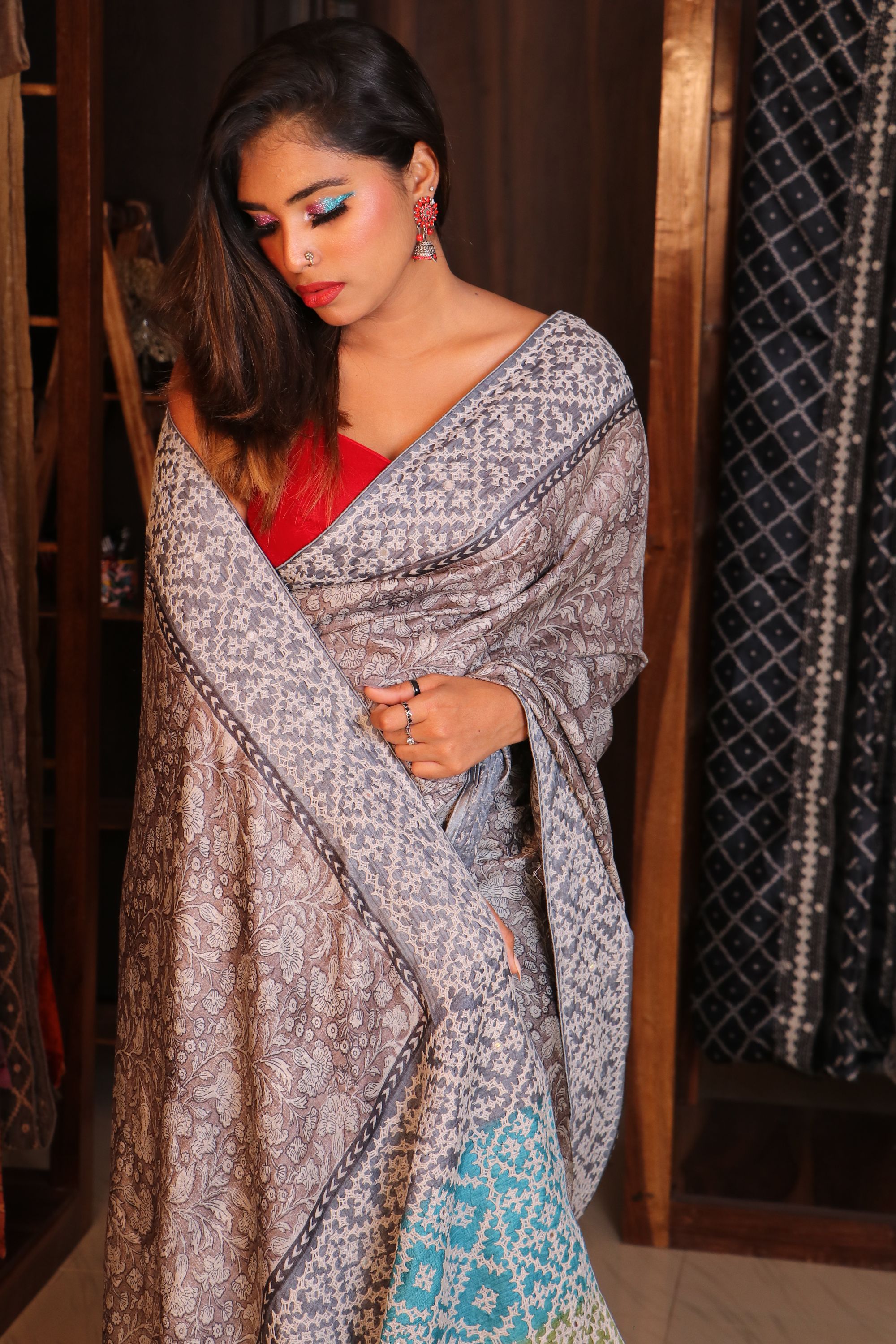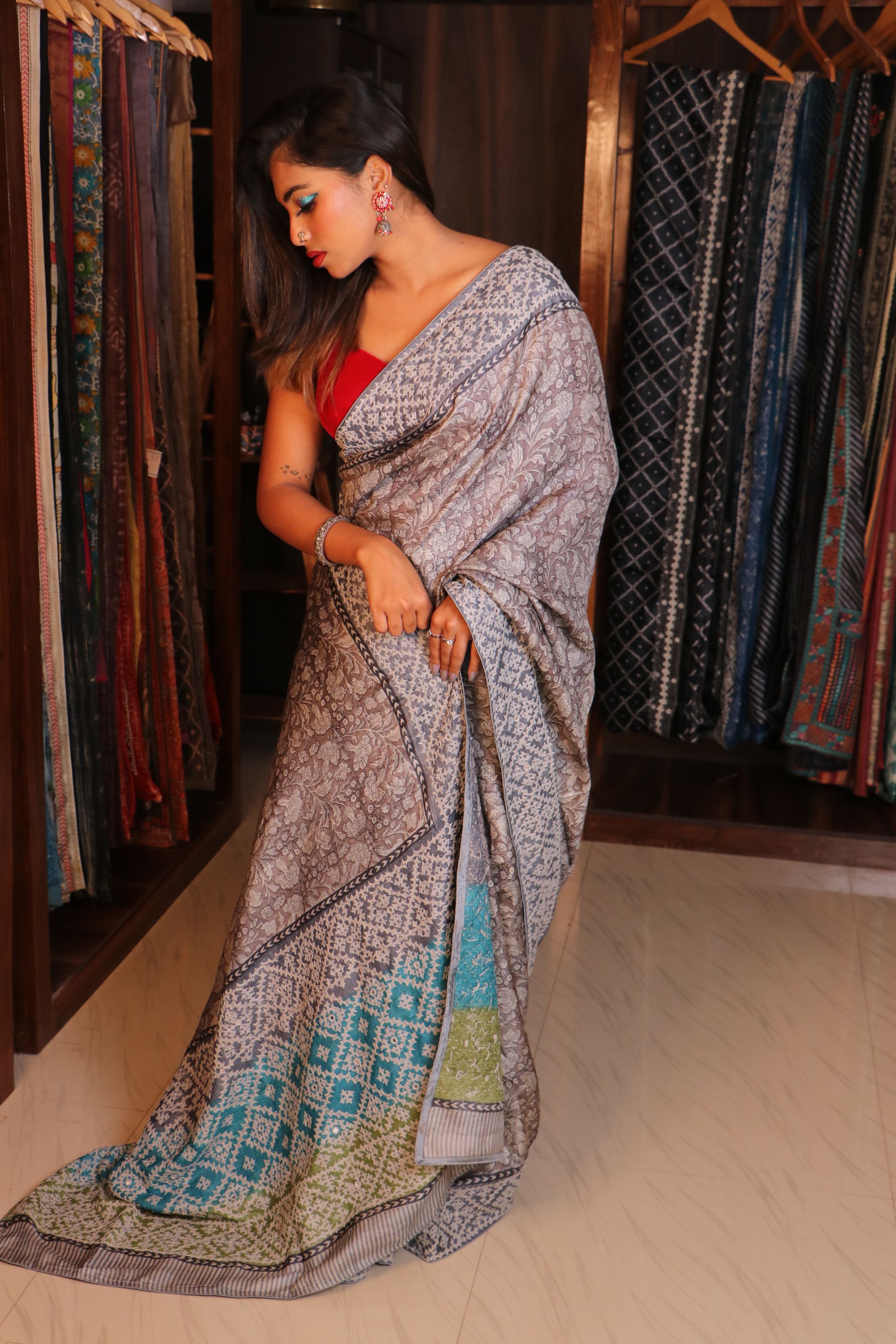 Hand work Kutch Work Patola tussar Pen Kalamkari Tussar silk