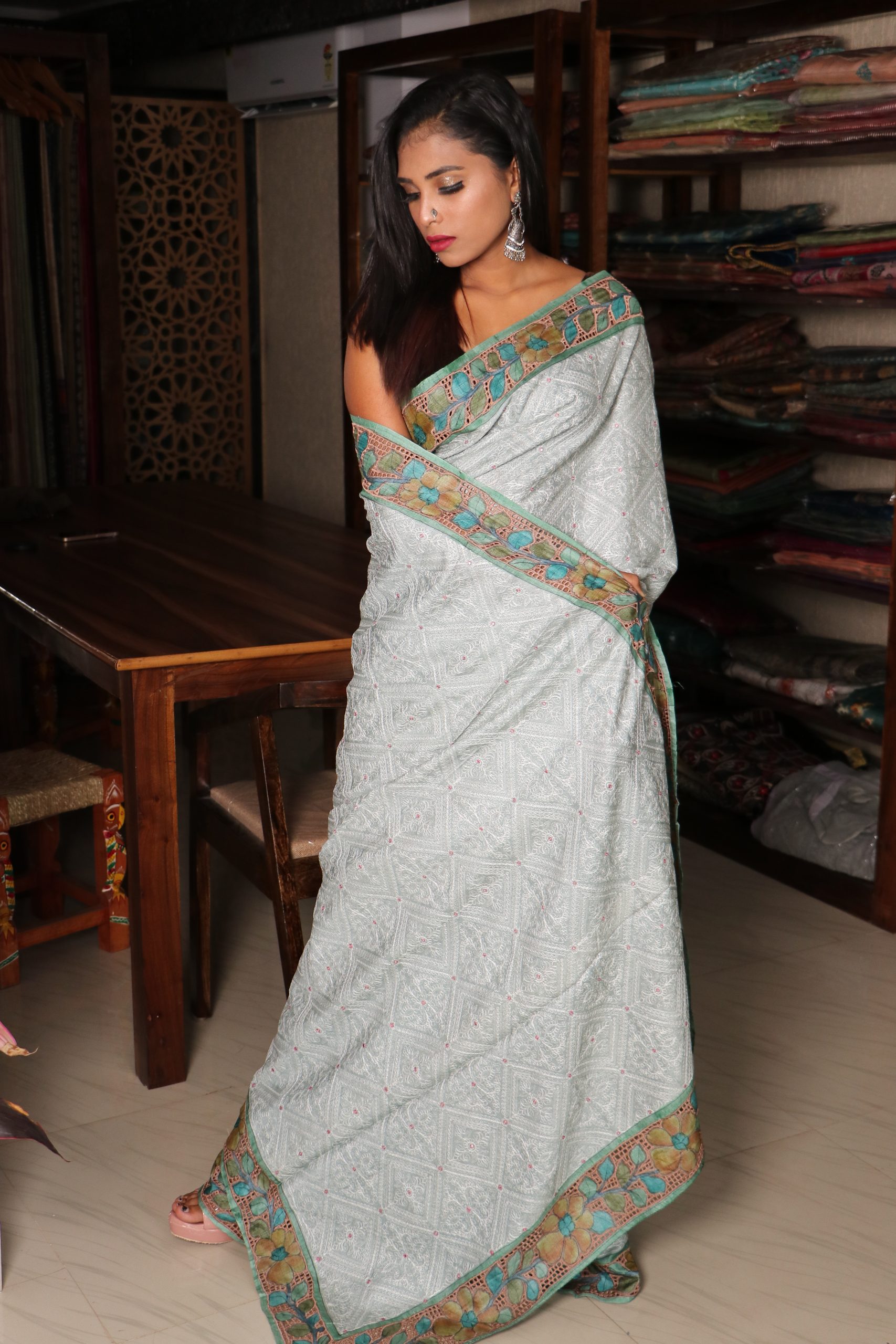 Absolutely Stunning CHIKANKARI TUSSAR PEN KALAMKARI CUTWORK SAREE