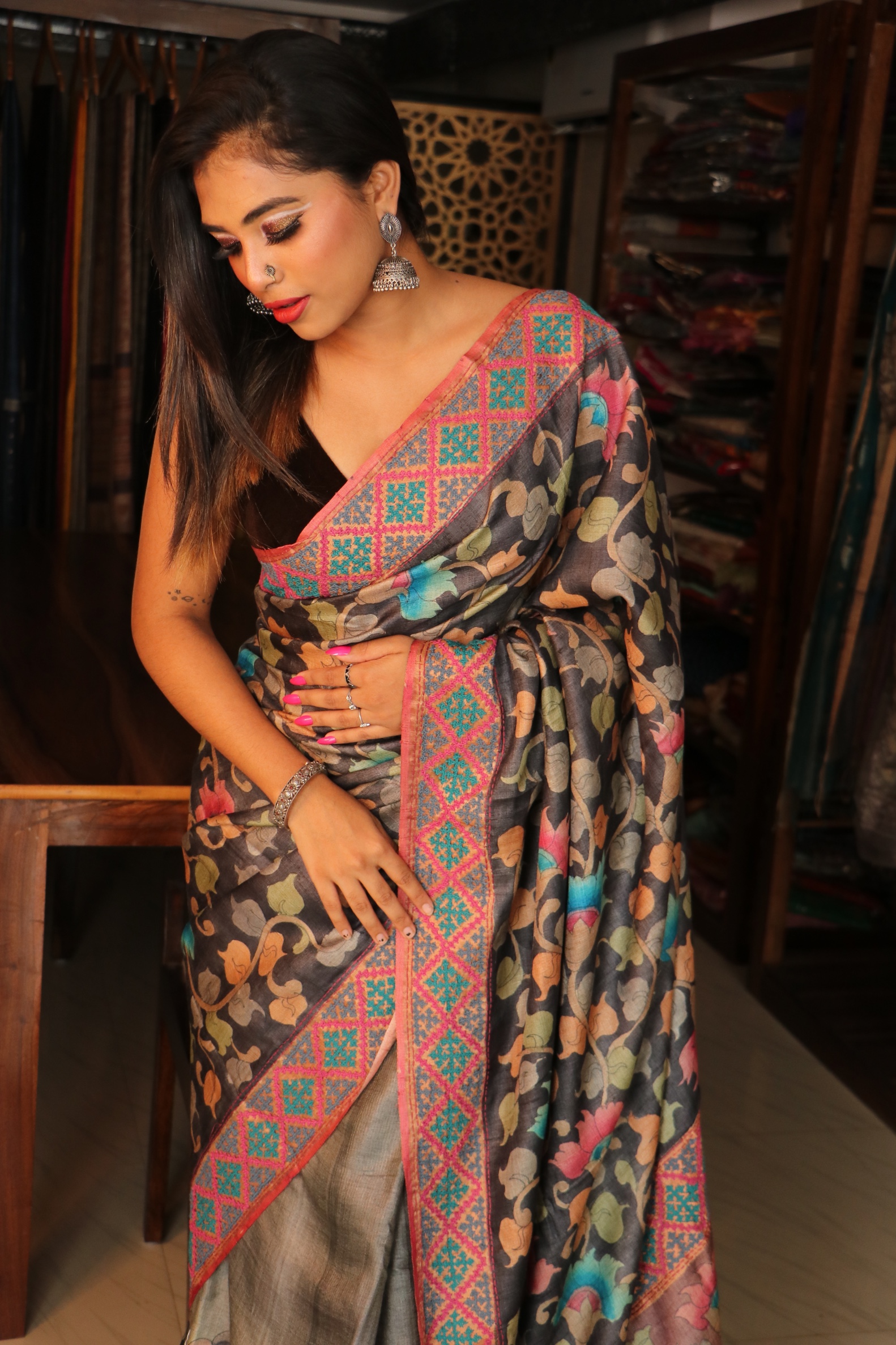 Hand Kalamkari Tussar with Kutch work