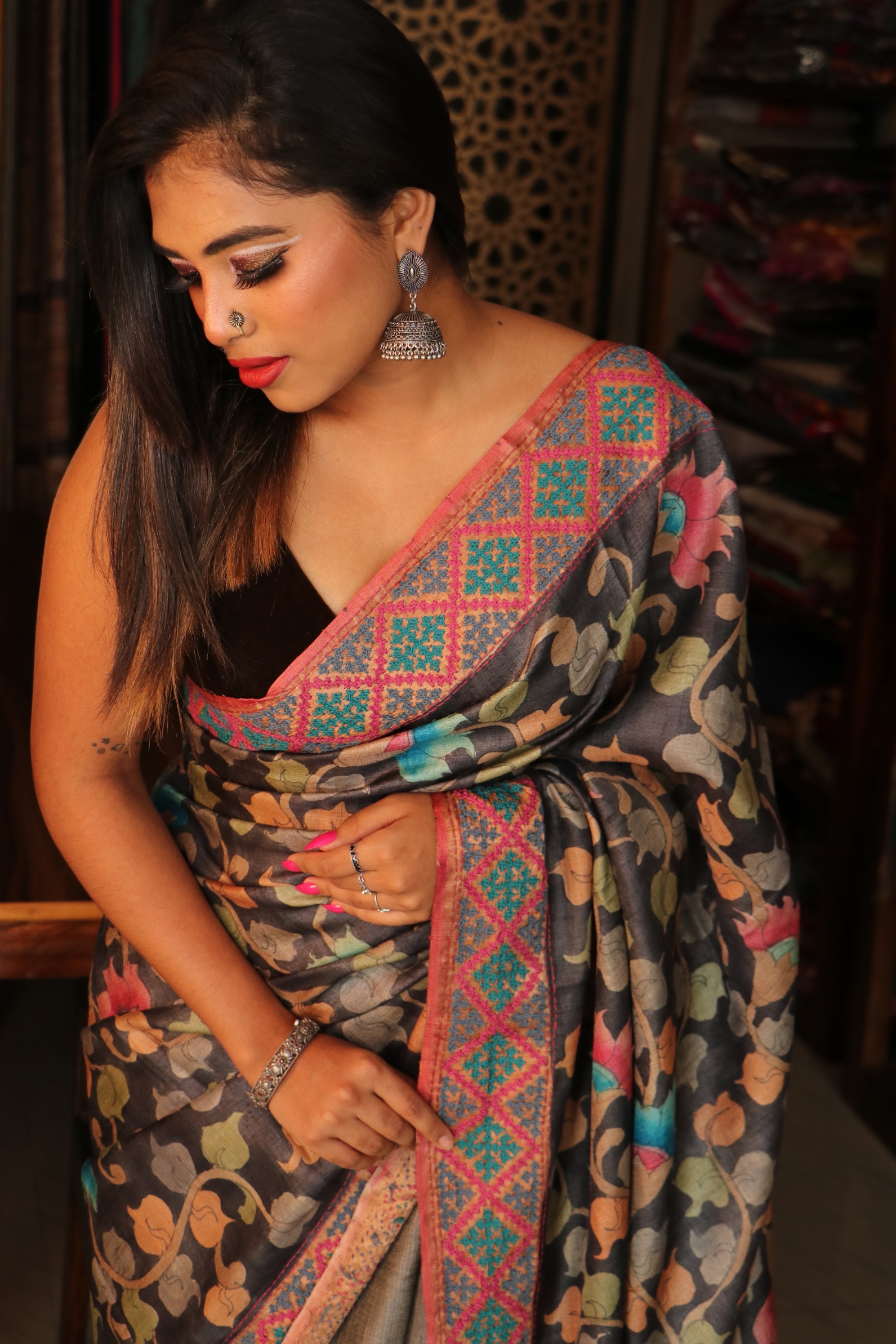 lehariya Kalamkari Tussar with Knot work