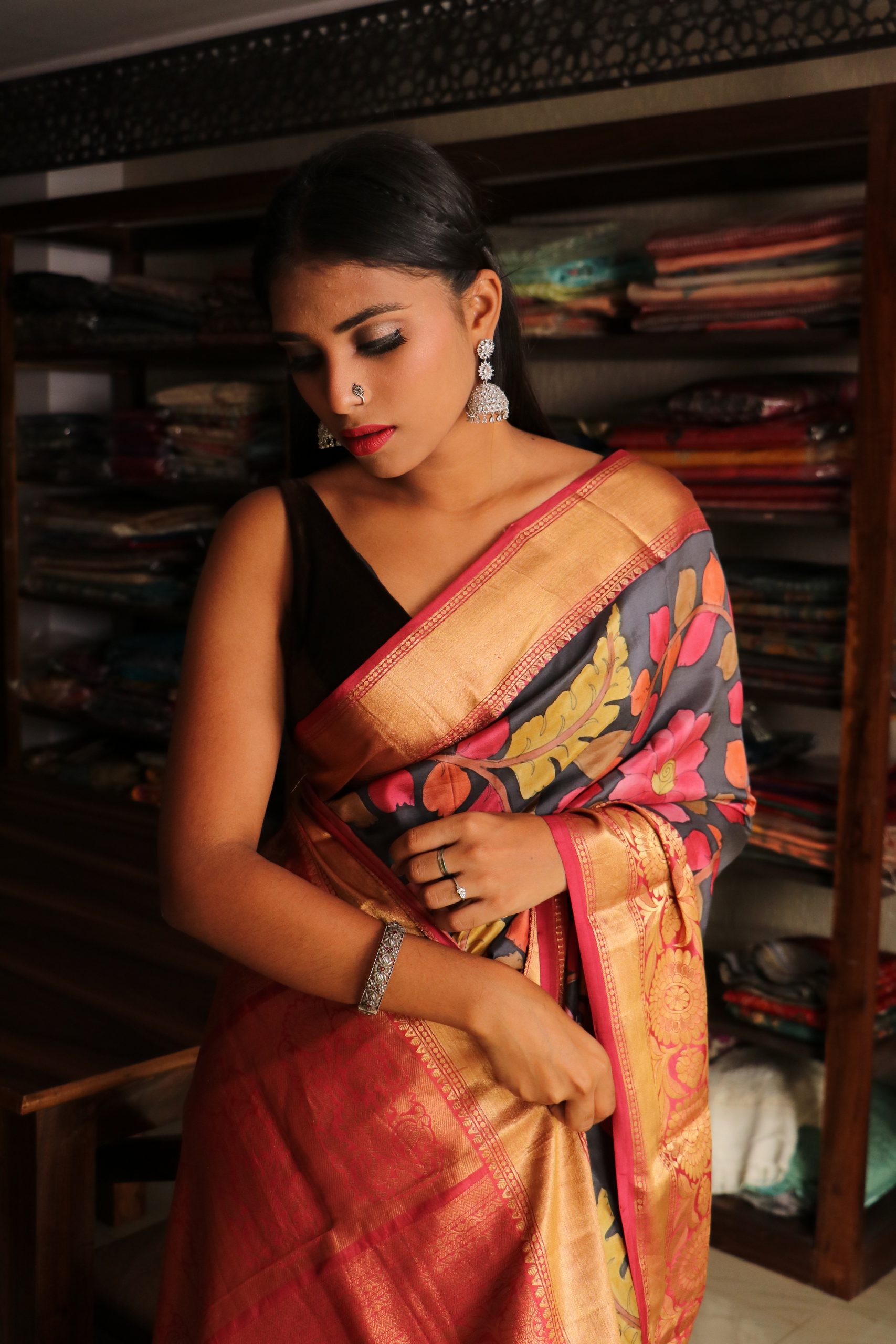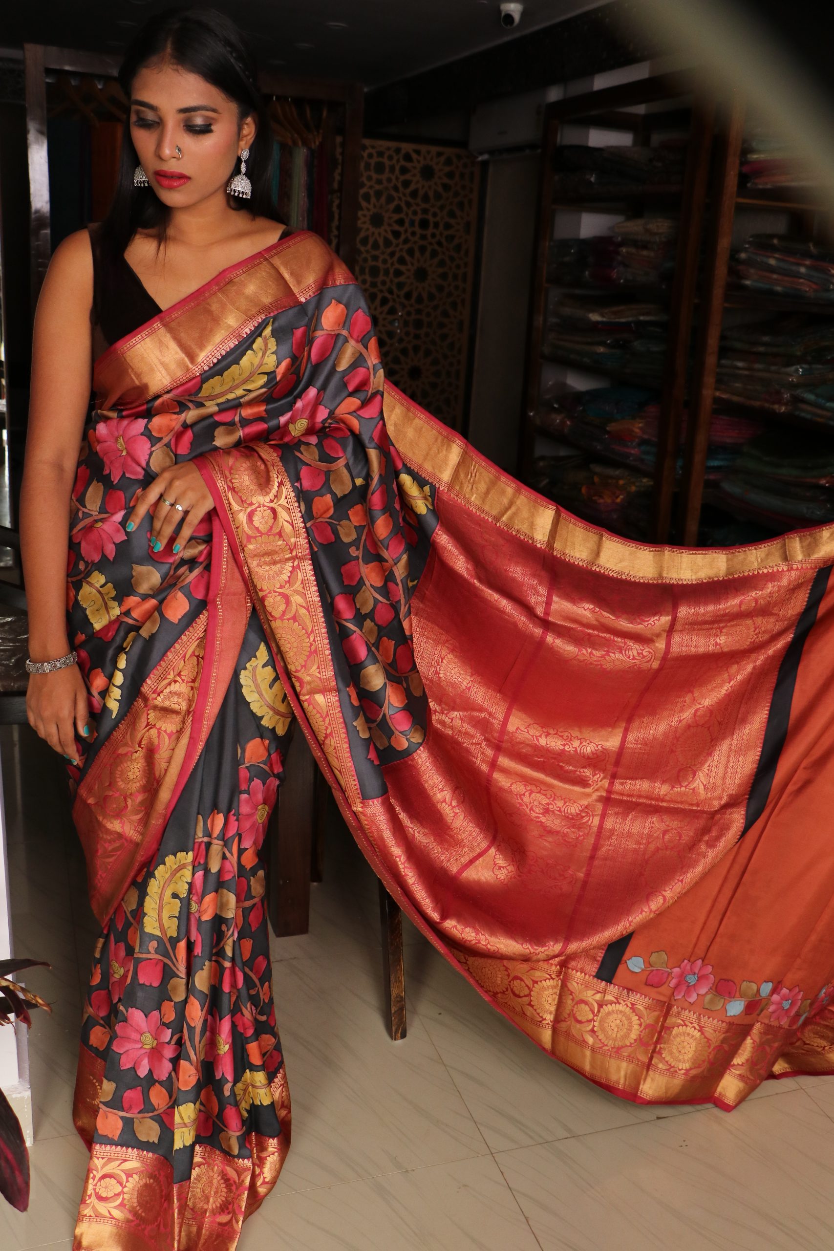 Absolutely Stunning KANCHIPURAM PEN KALAMKARI SAREE
