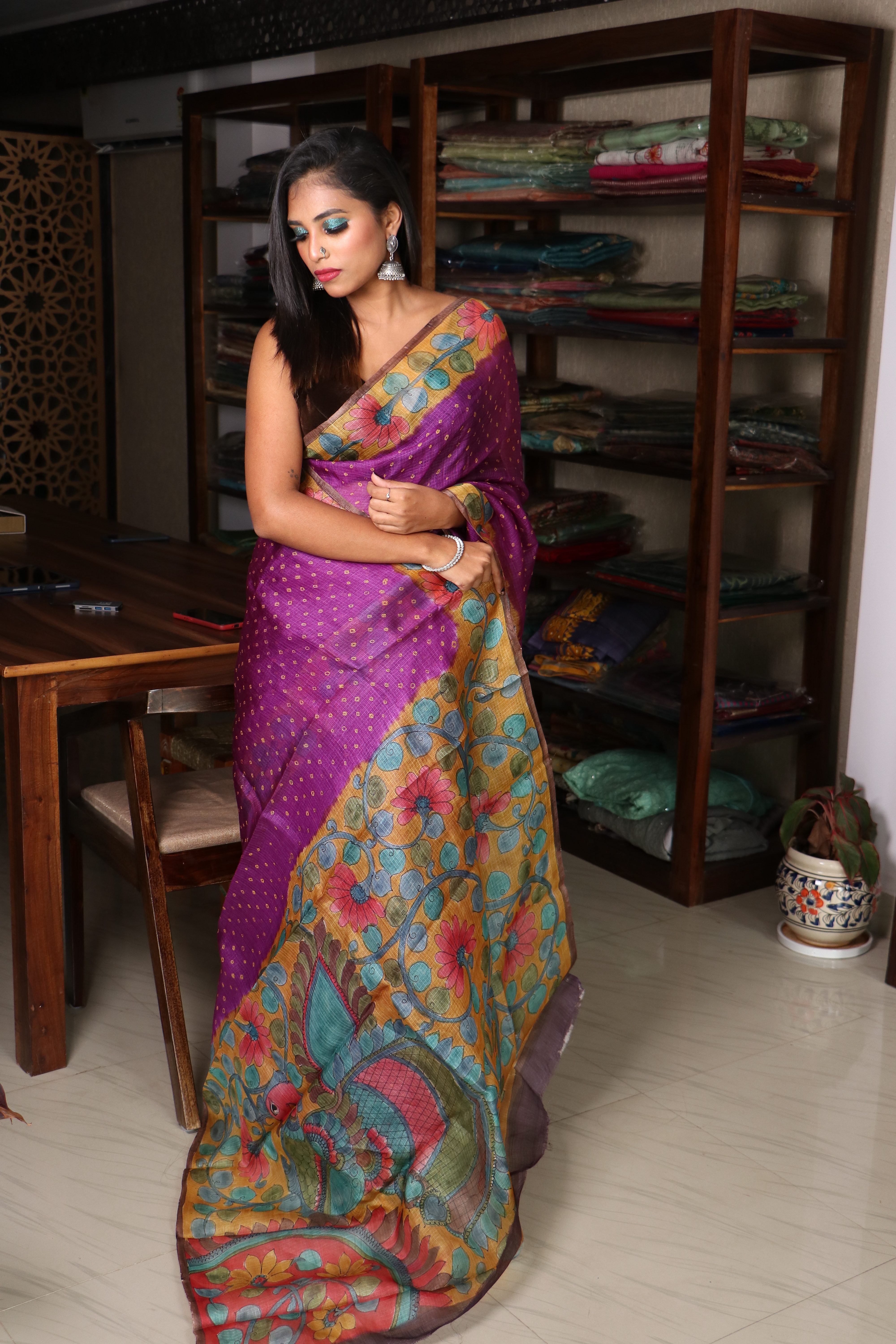 Categories: Bandhini Sarees, Kota Tussar, Pen Kalamkari, Pure Silks, Top Rated Products, Tussar Treasures