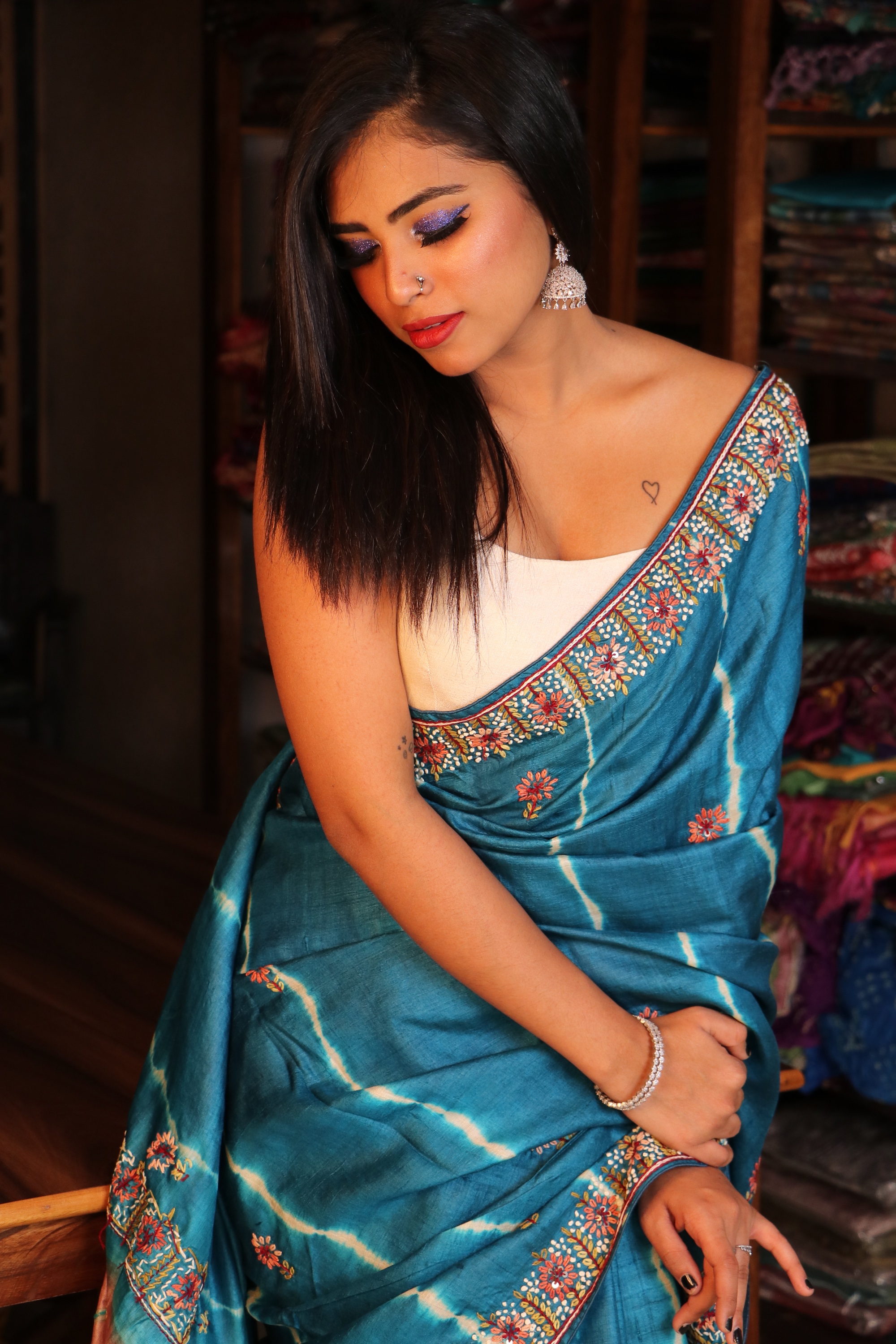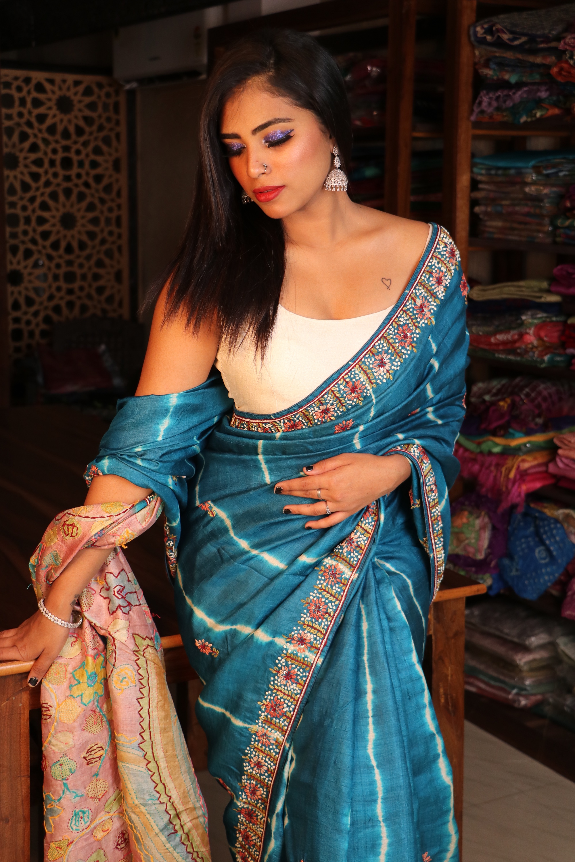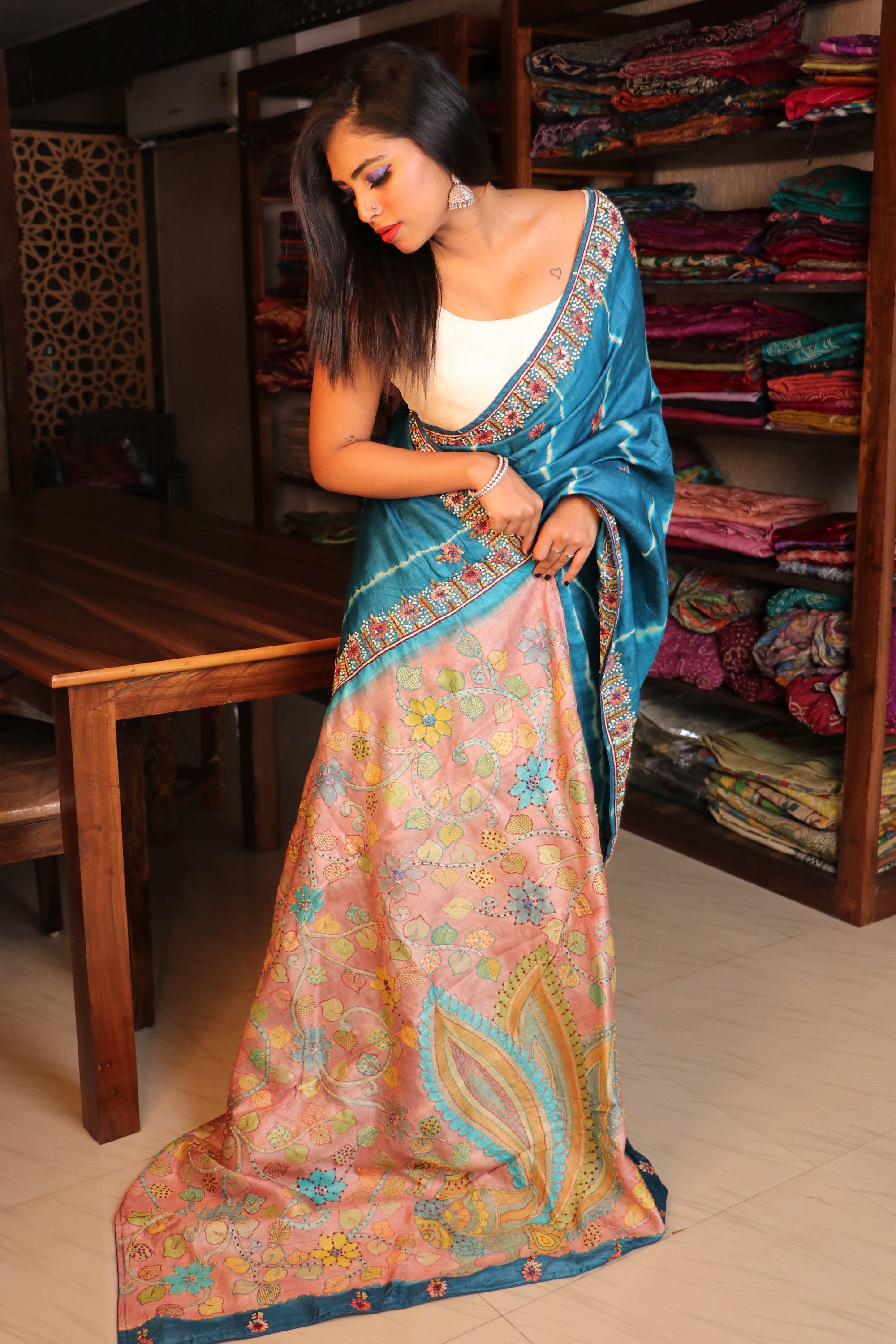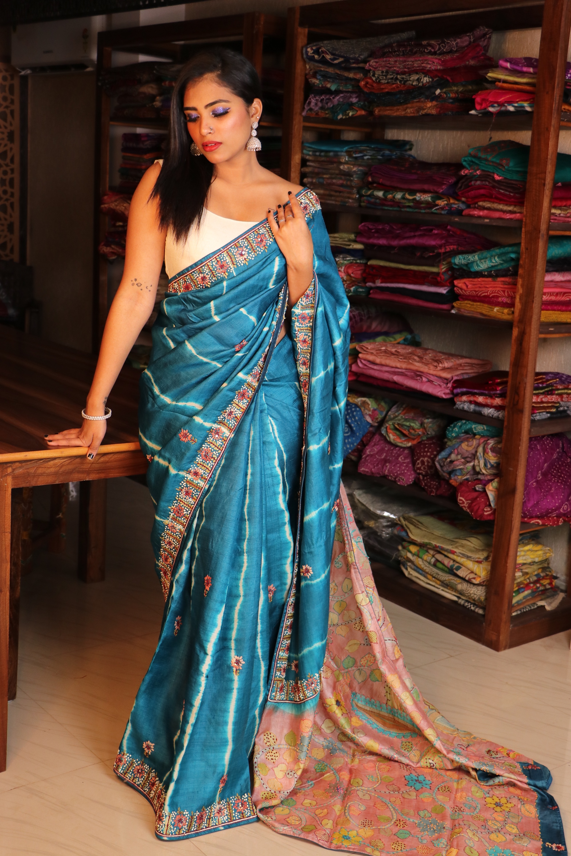 lehariya Kalamkari Tussar with Knot work