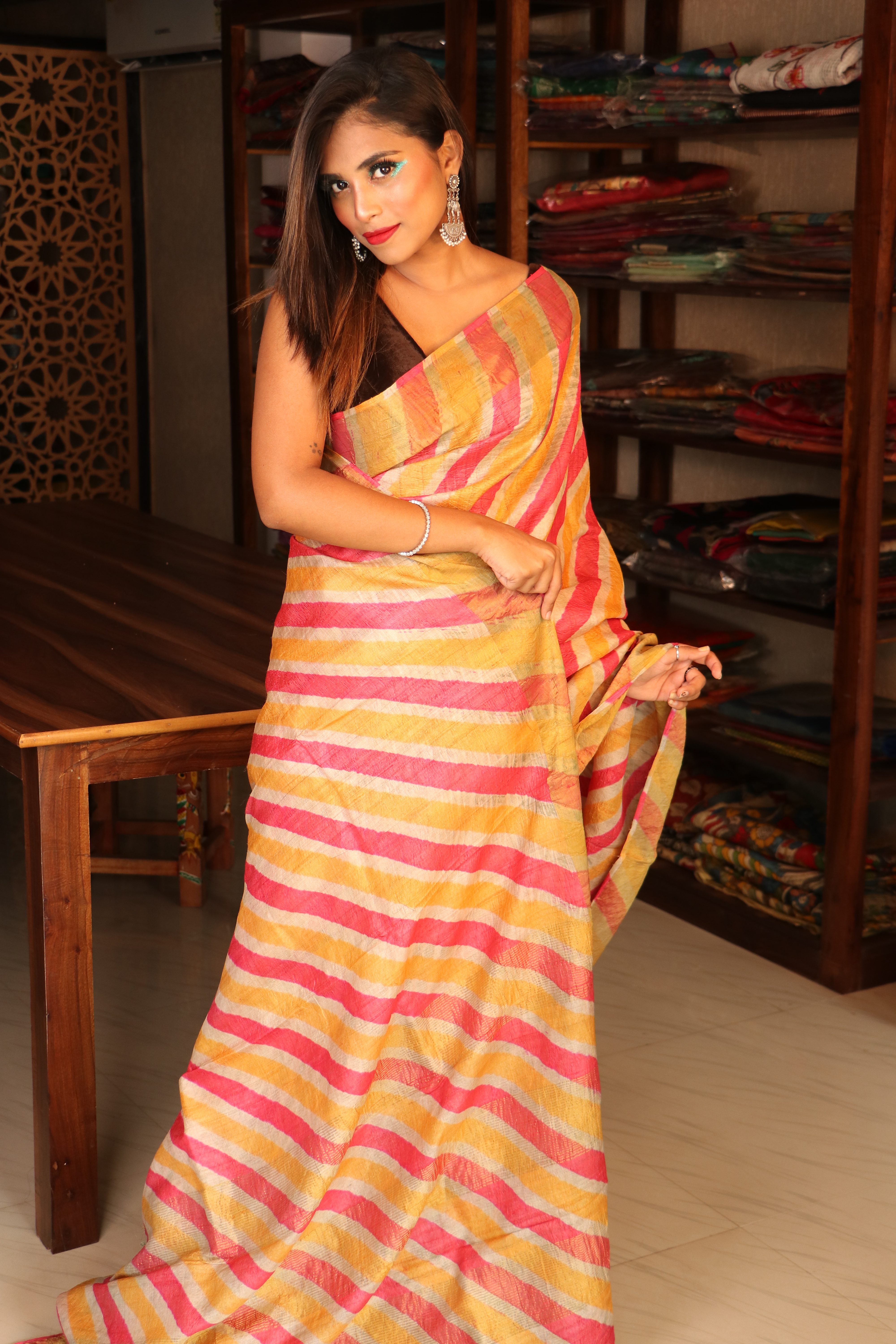 Absolutely Stunning Tussar Silk with Authentic Lehariya