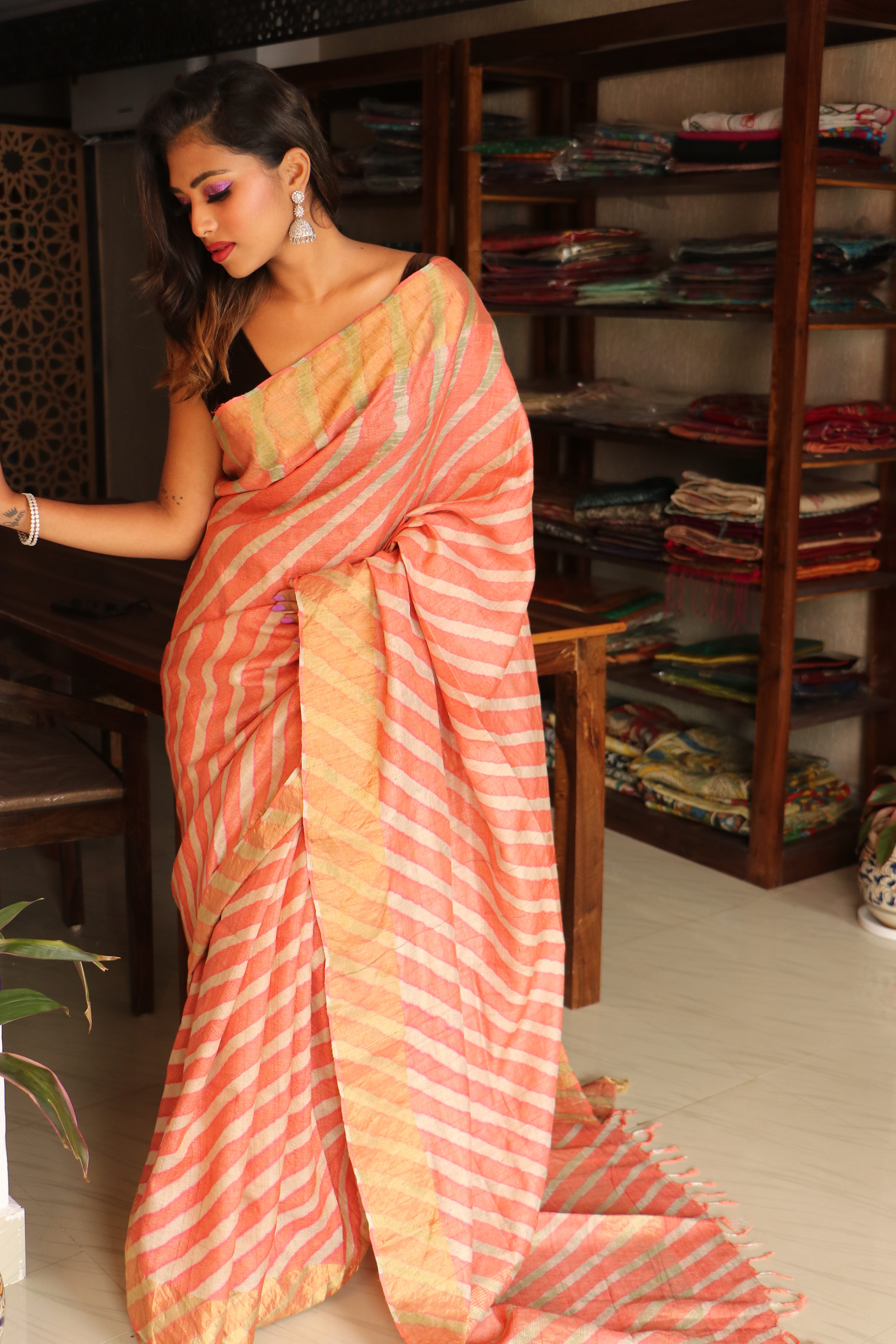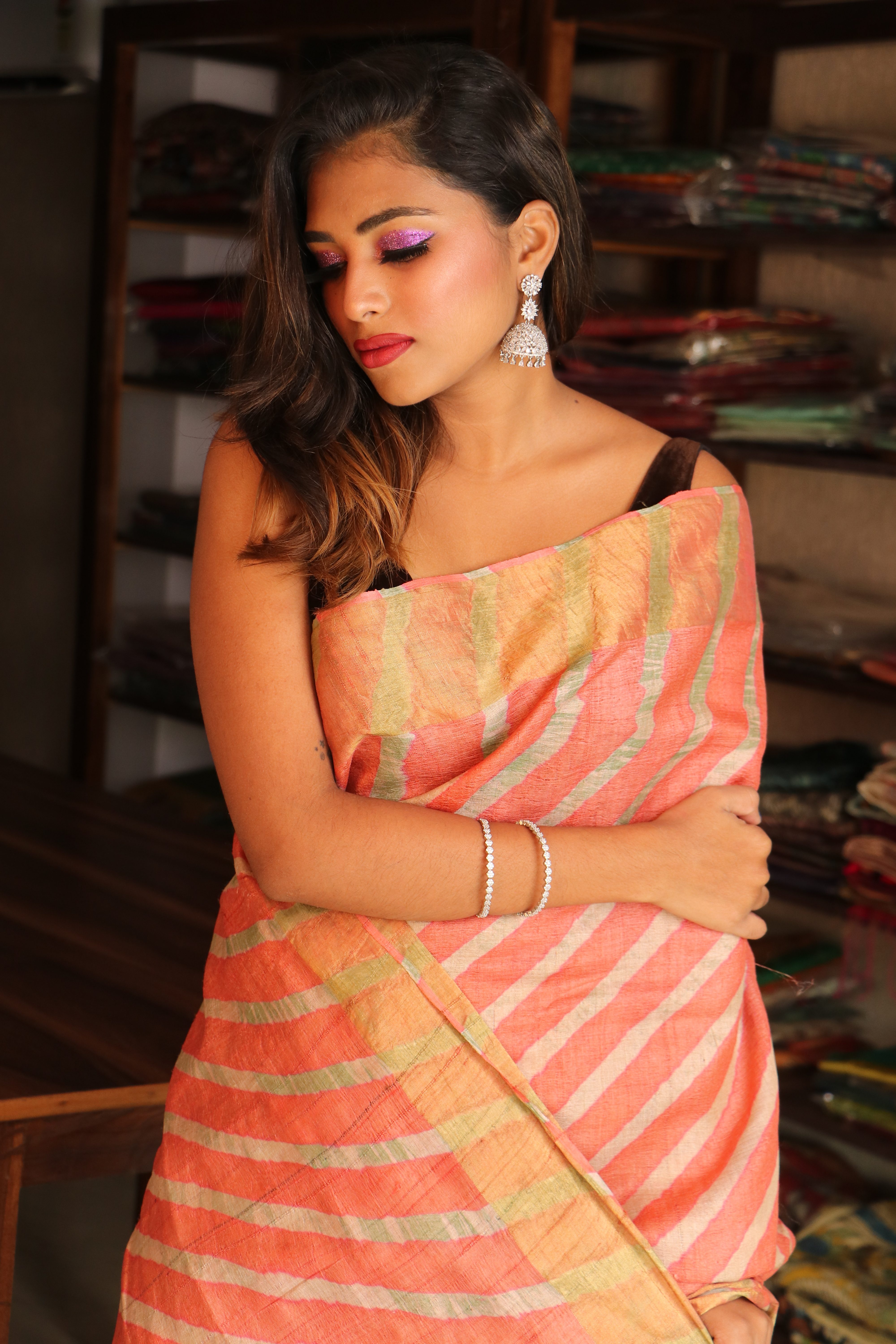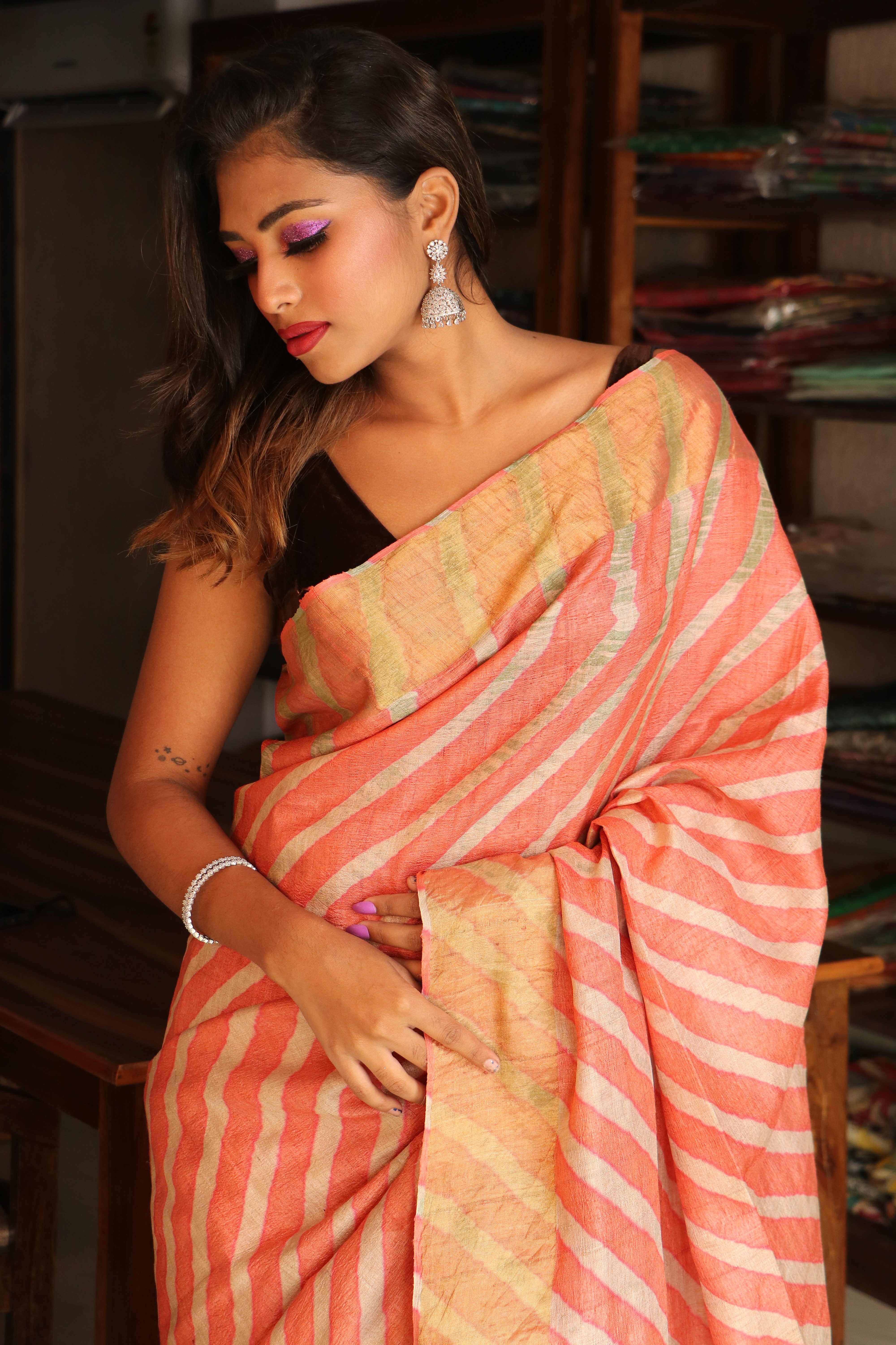 Be the first to review “Peach Tussar Lehariya Saree” Cancel reply