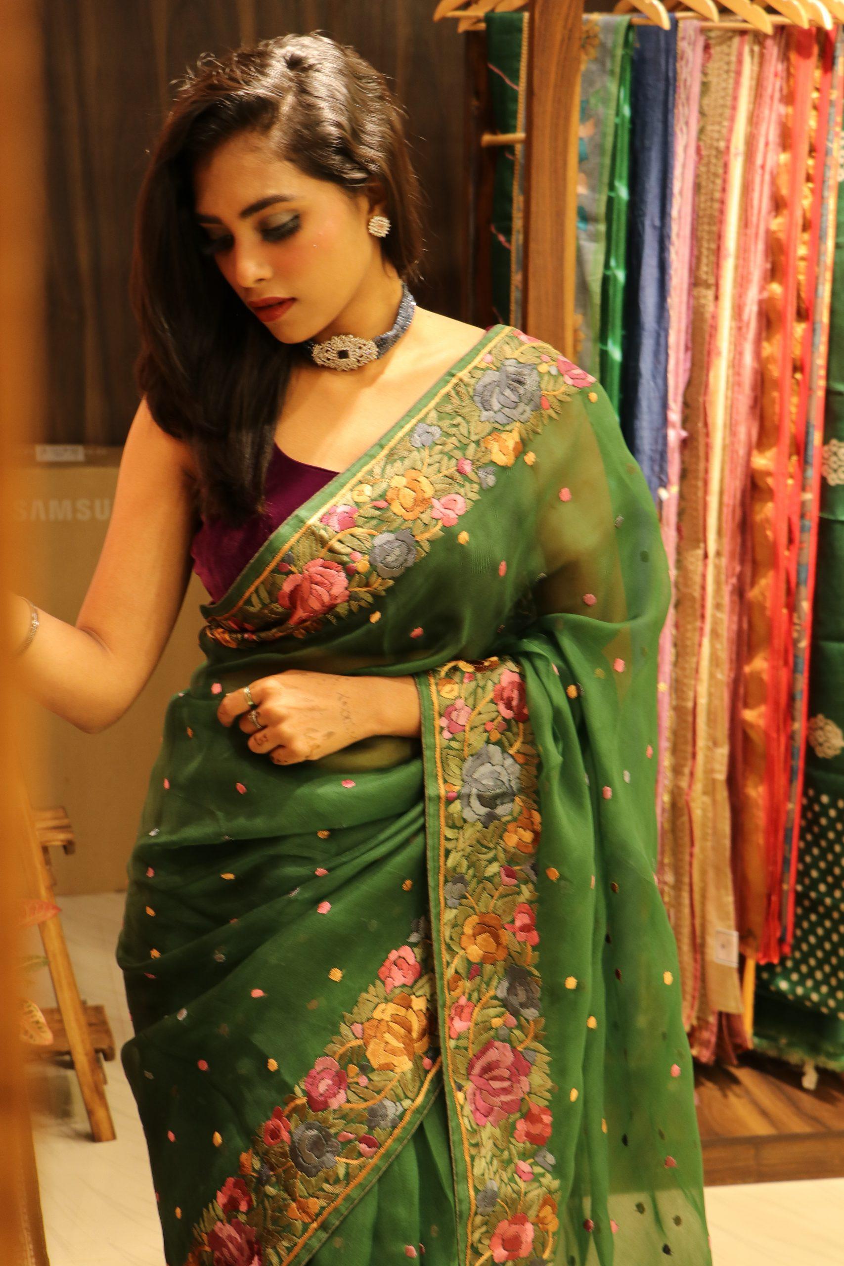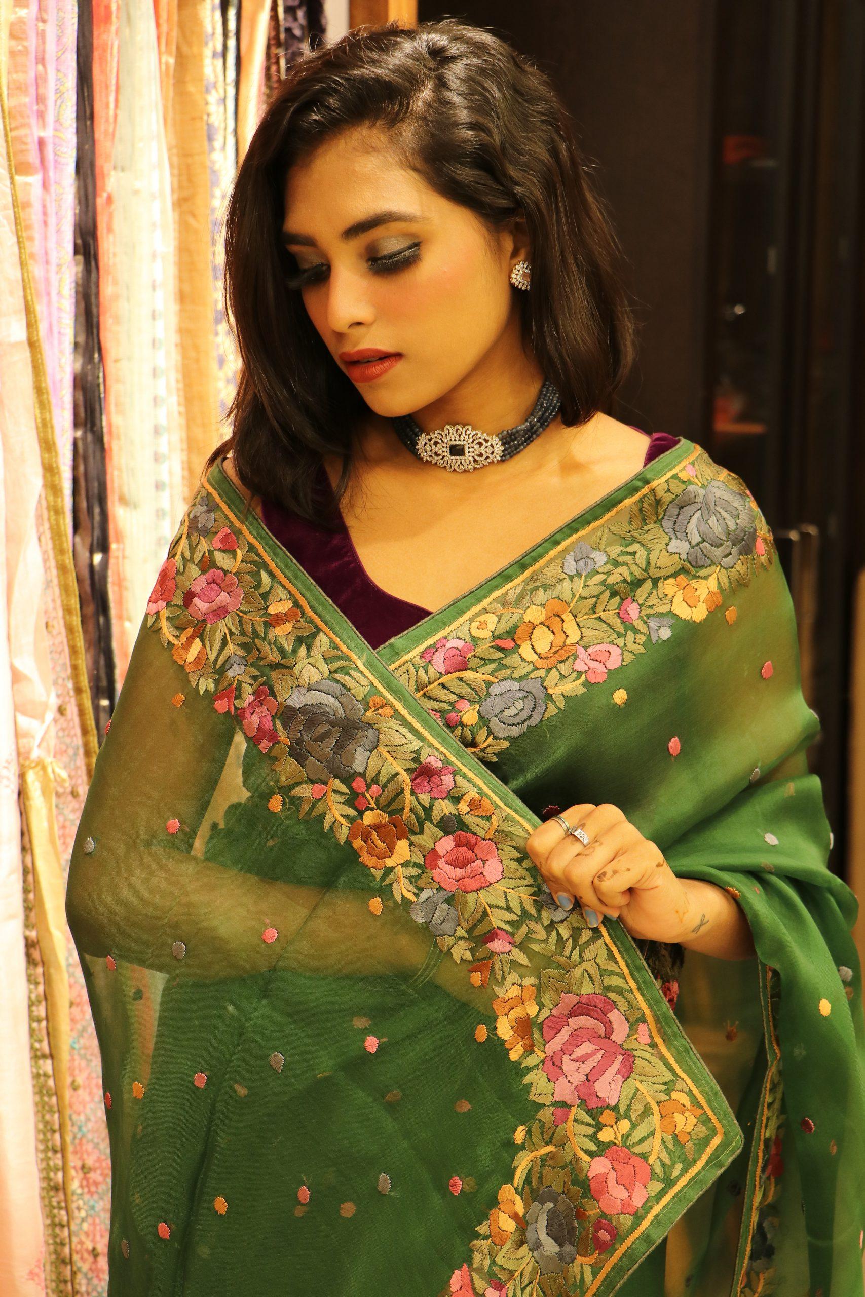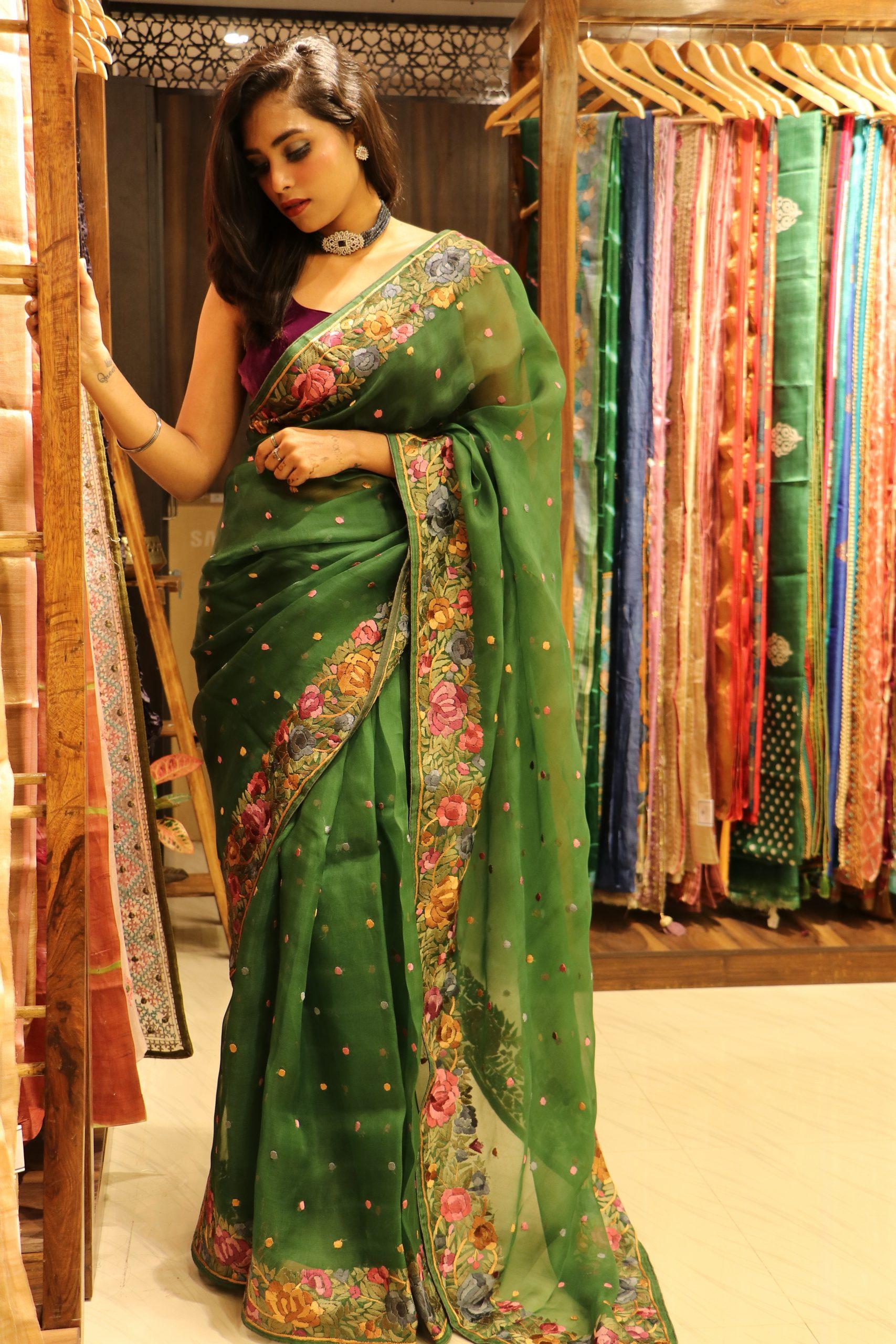 Absolutely Stunning pure organza with hand parsi work saree