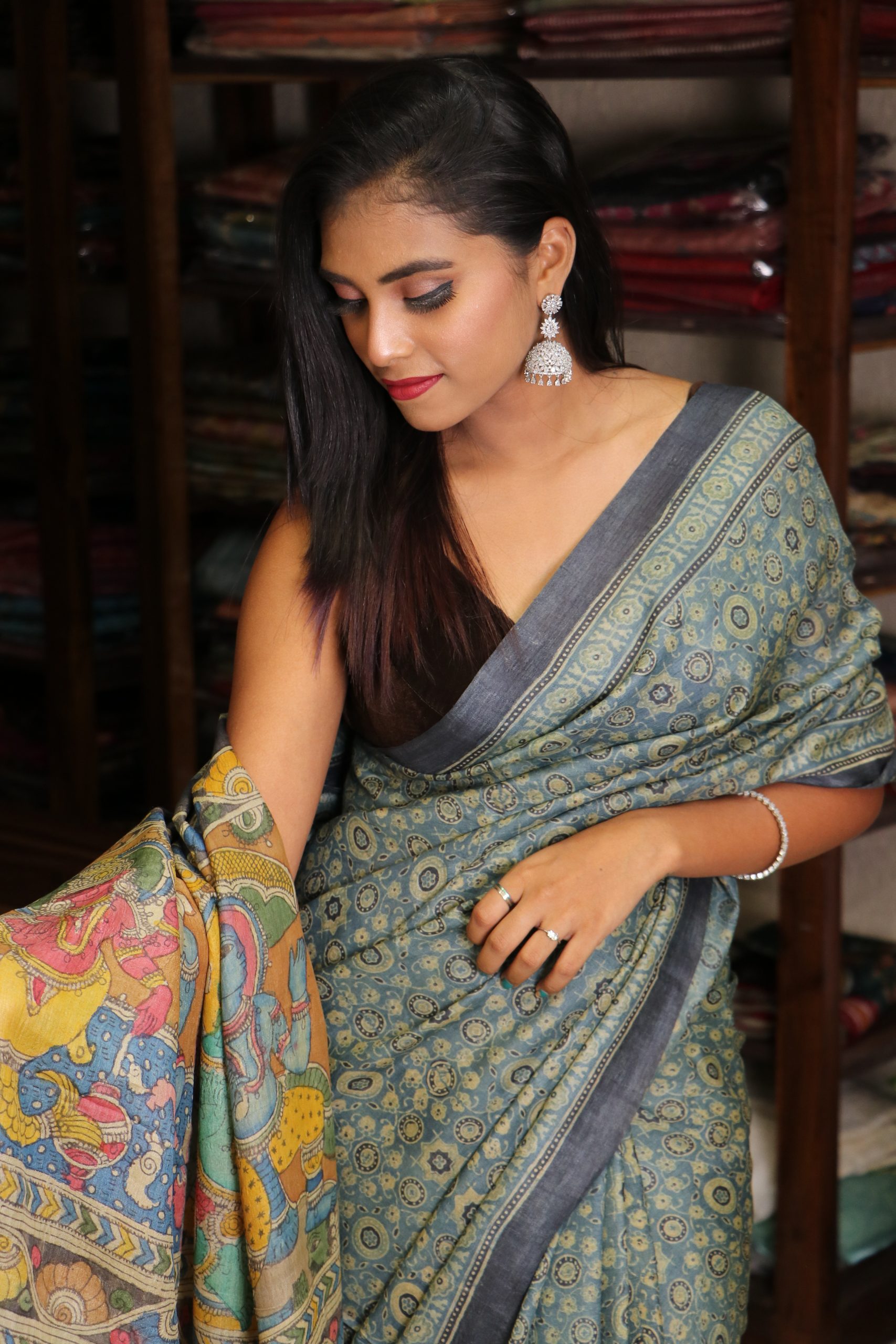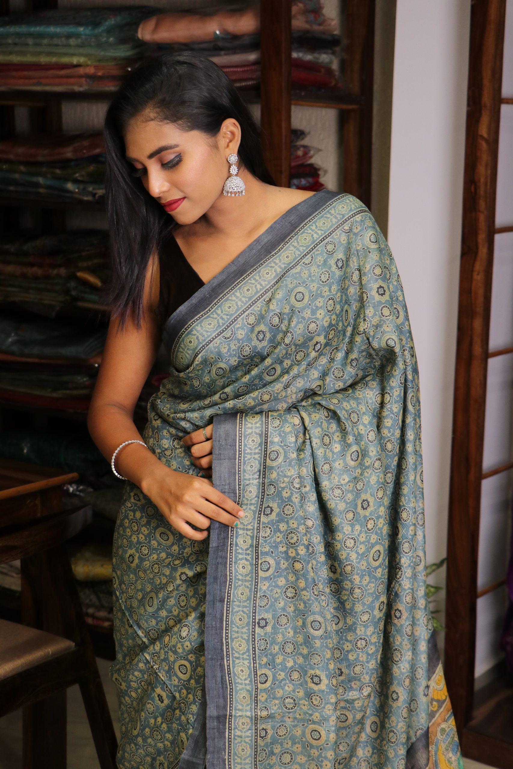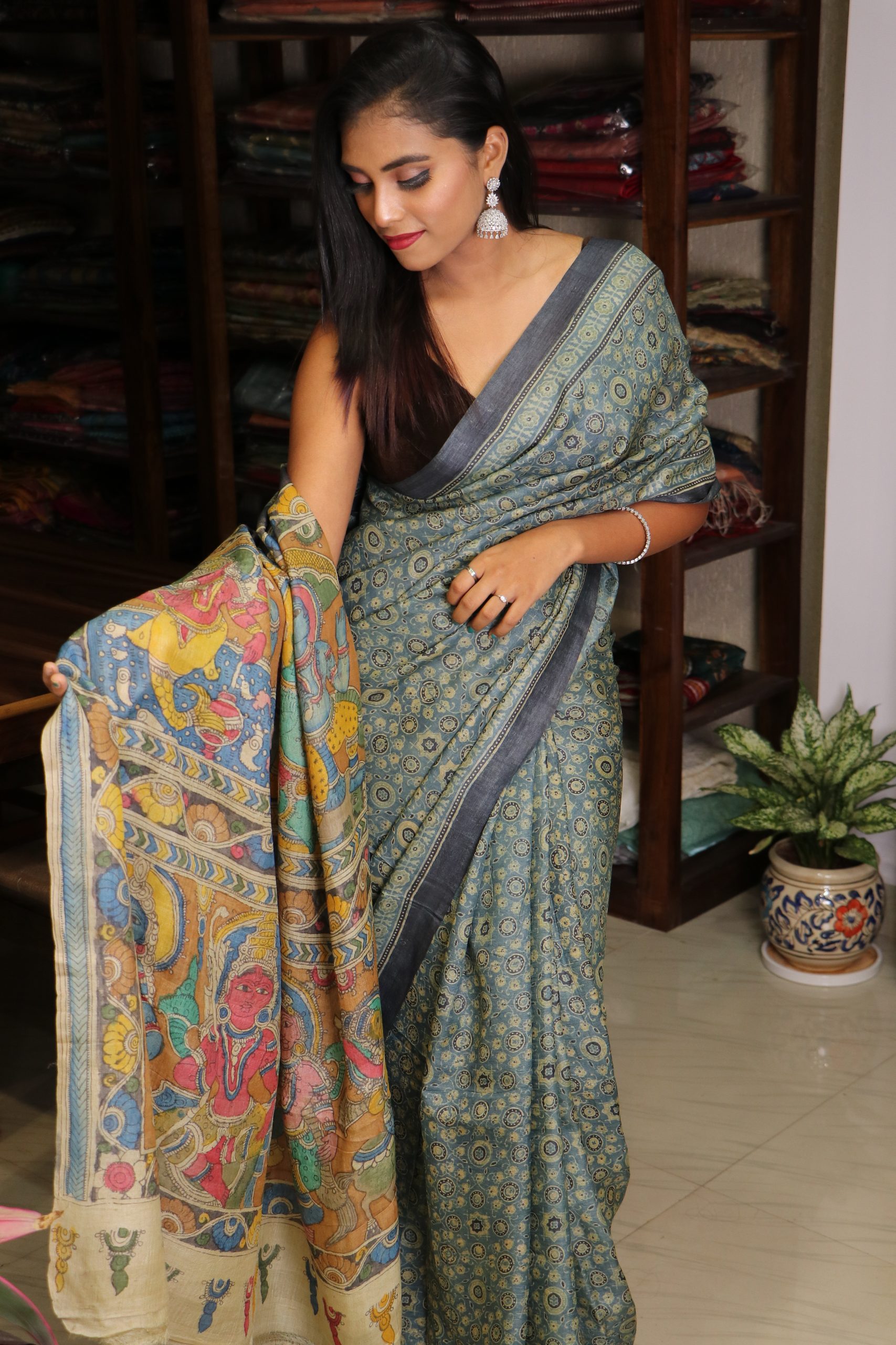 TUSSAR AJRAKH PEN KALAMKARI Saree