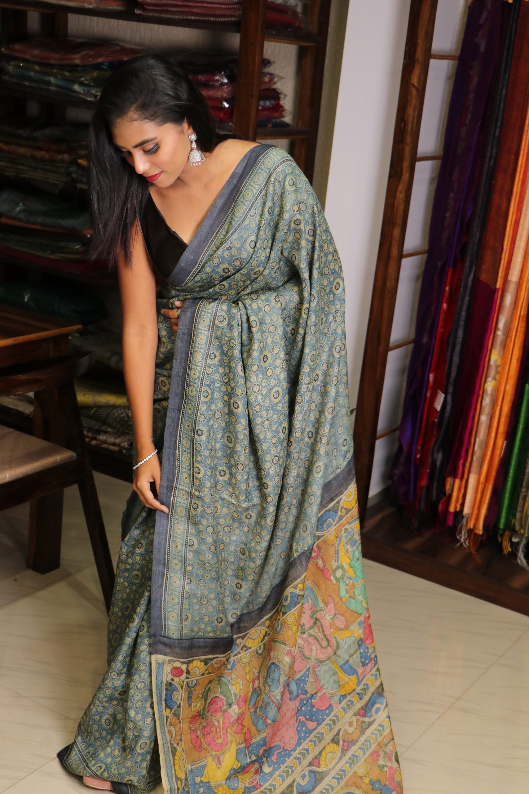 Absolutely Stunning TUSSAR AJRAKH PEN KALAMKARI SAREE