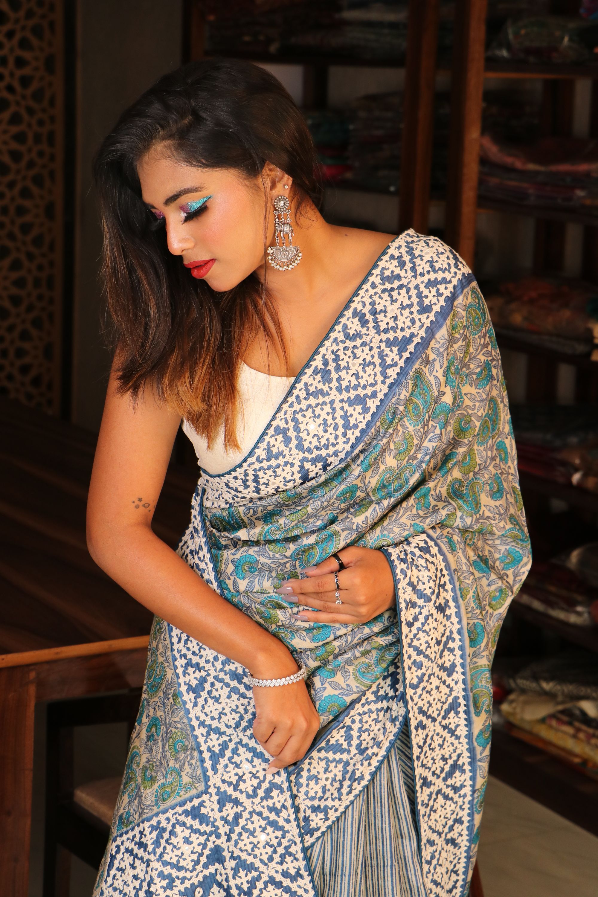 lehariya Kalamkari Tussar with Knot work