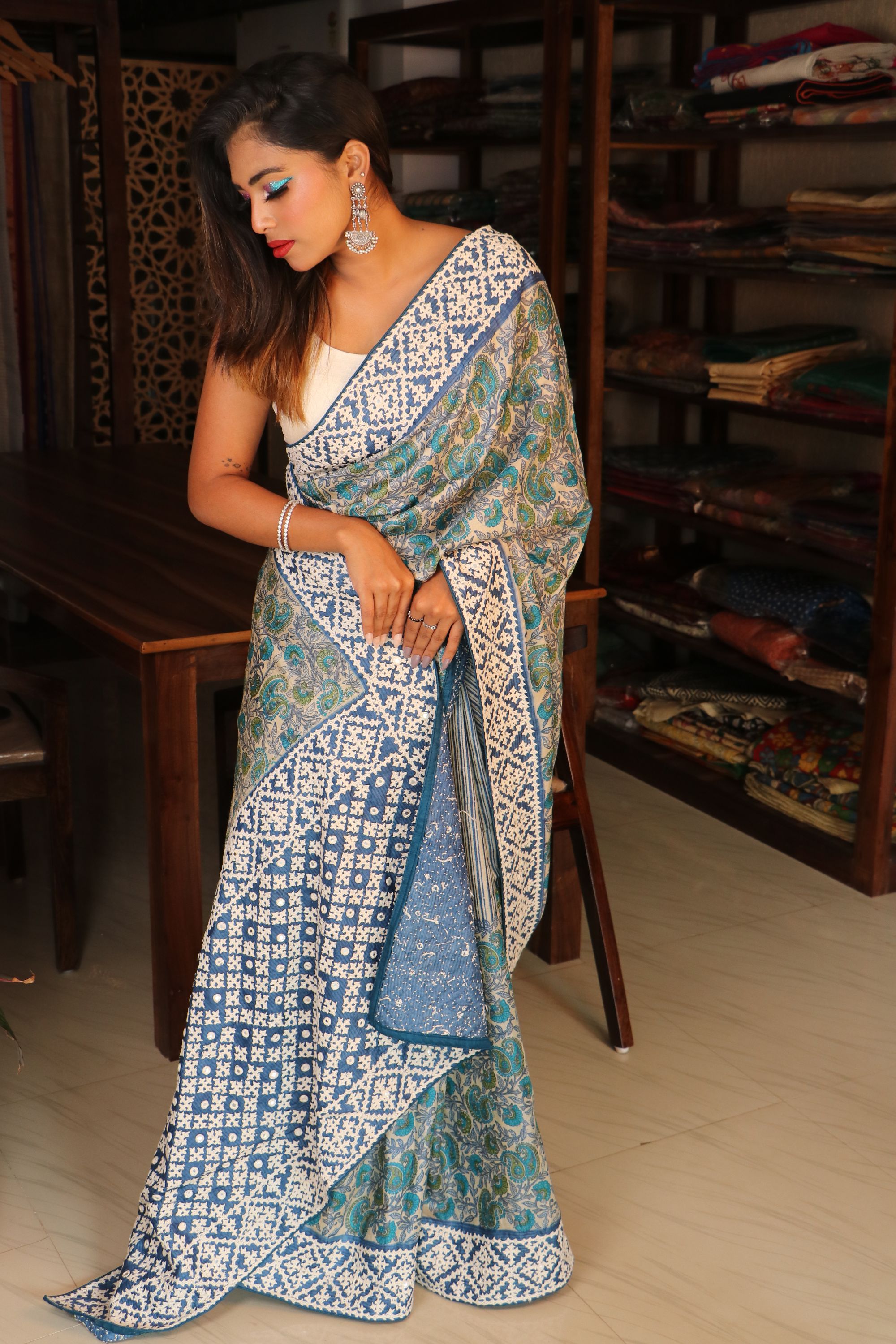 Kalamkari Tussar with Chikankari