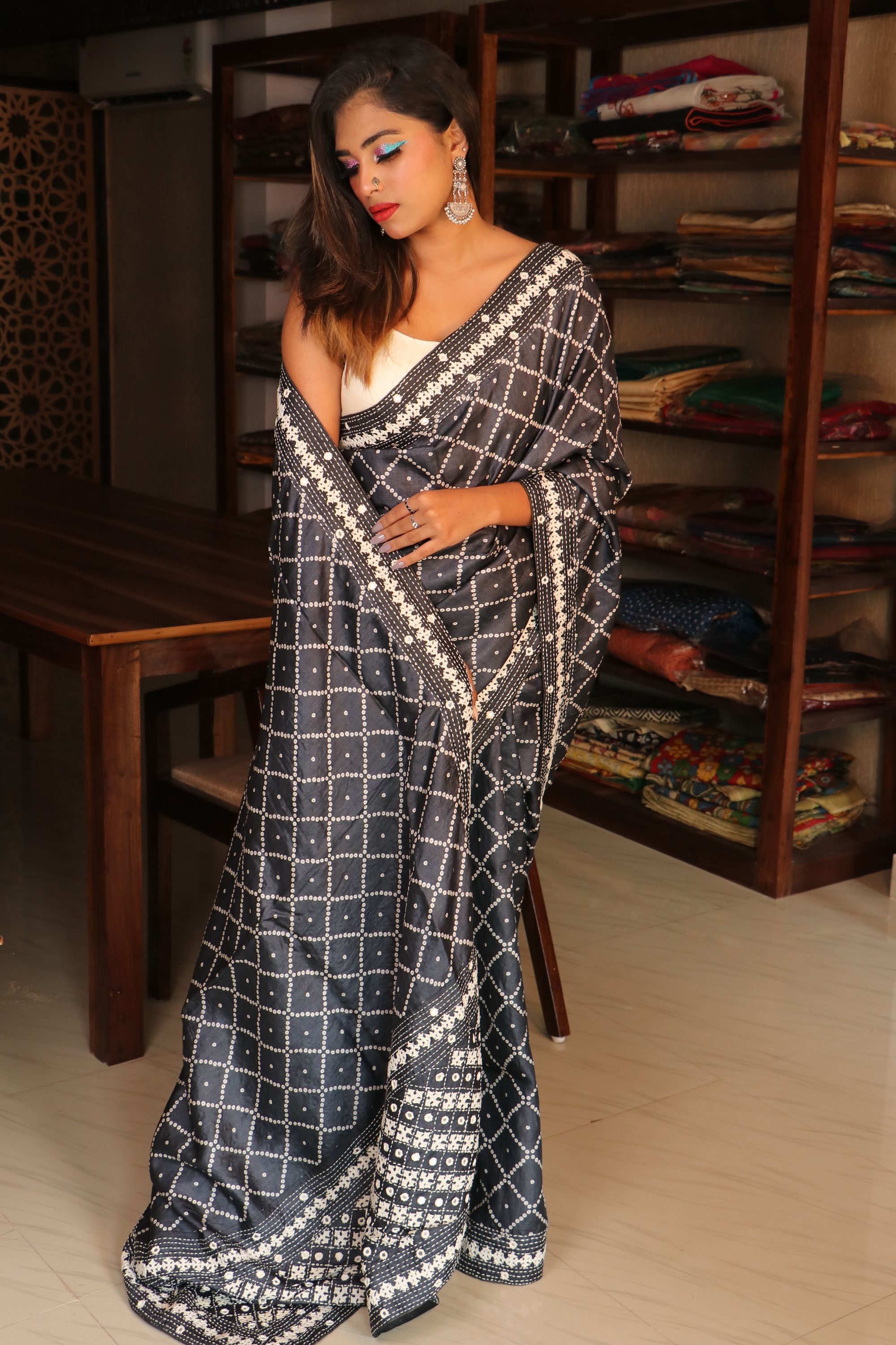 Tussar Bandhani Hand Kutch Work