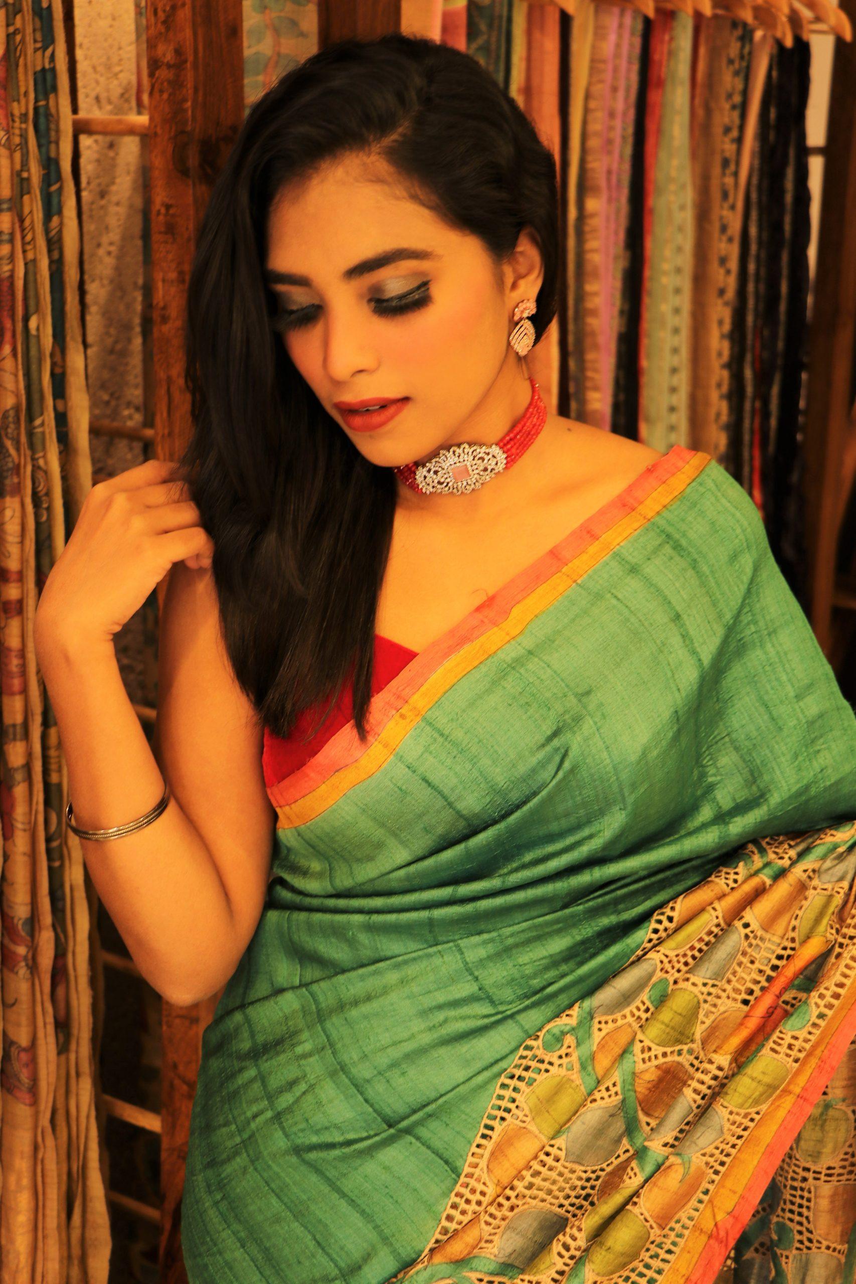 TUSSAR CROSS PEN KALAMKARI CUTWORK Saree
