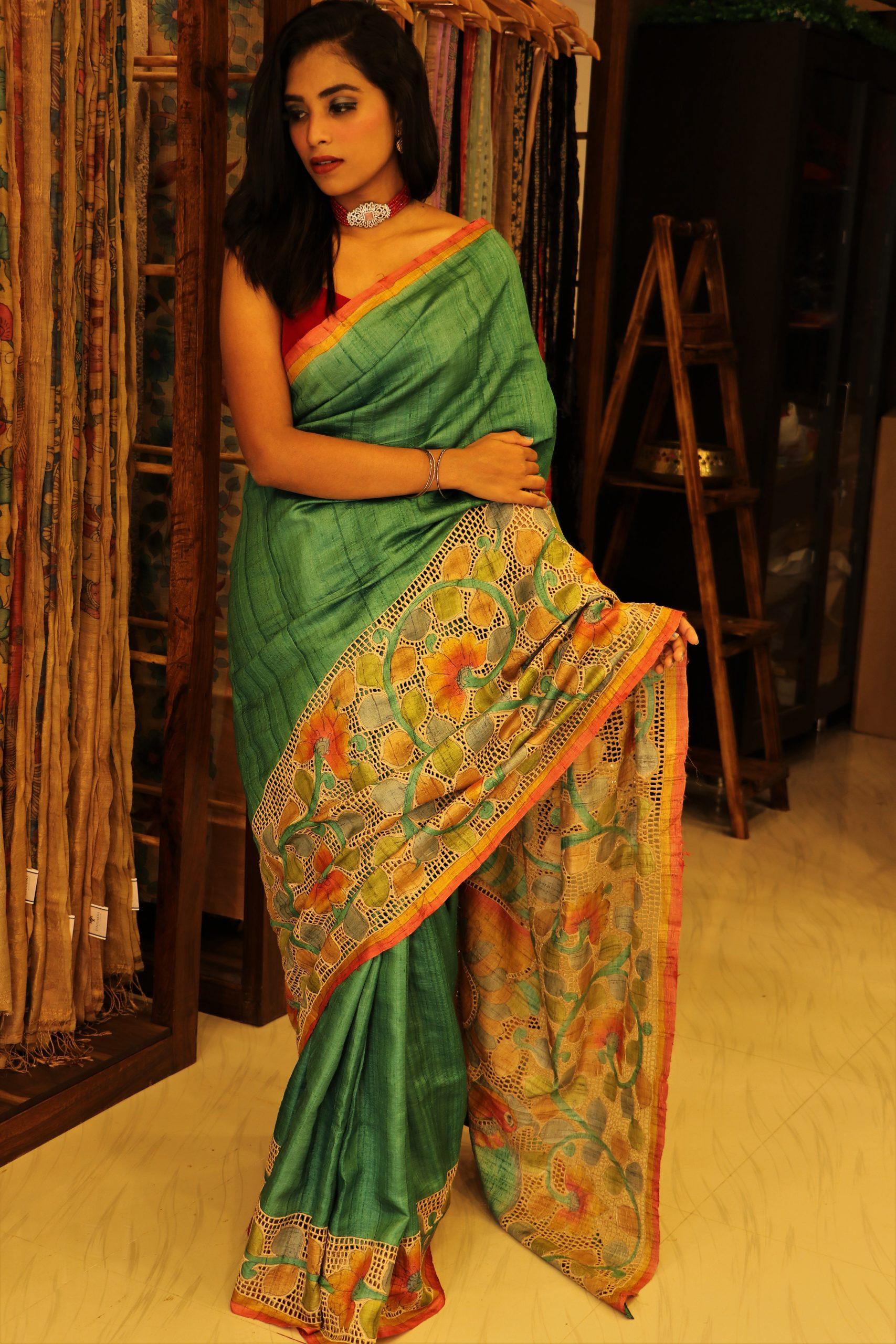 Absolutely Stunning TUSSAR CROSS PEN KALAMKARI CUTWORK SAREE