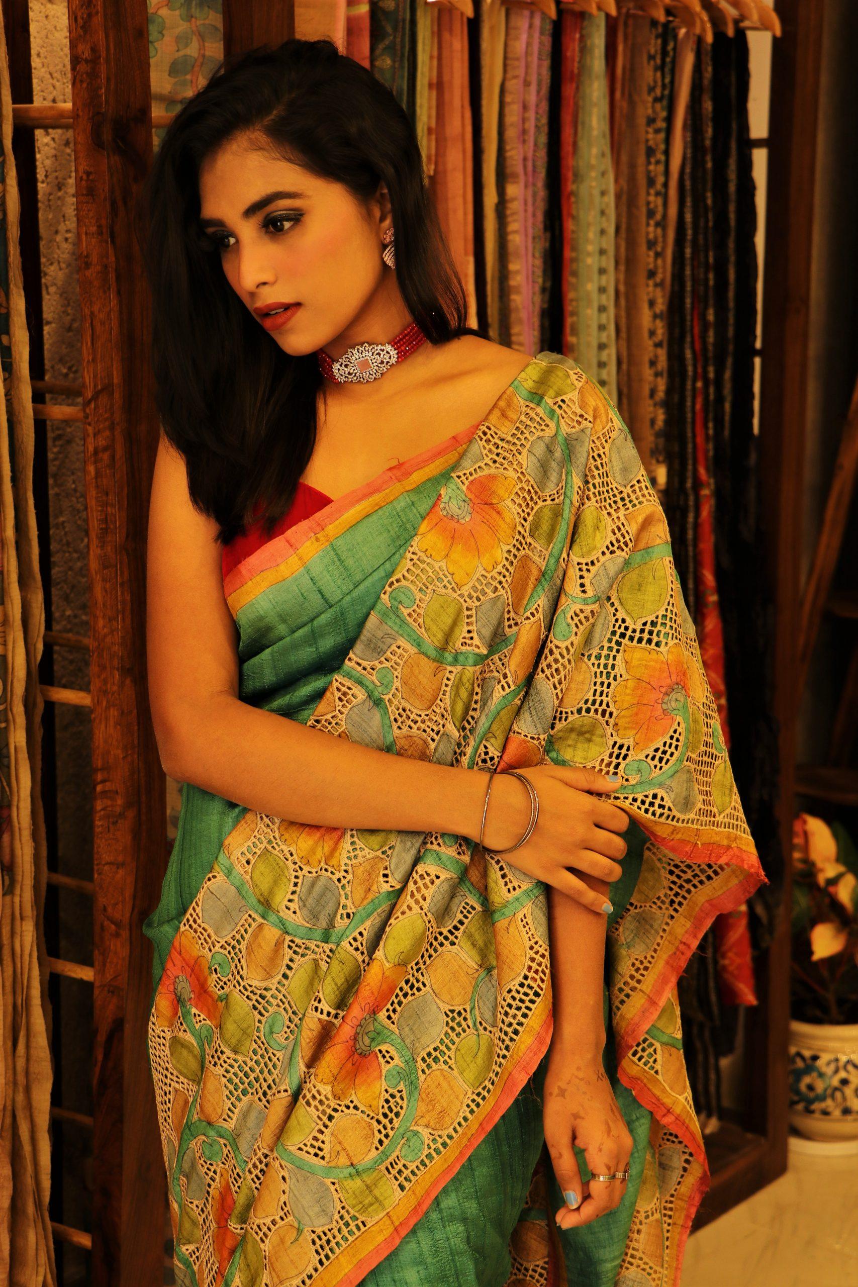 Hand Painted Tussar Kalamkari Cutwork
