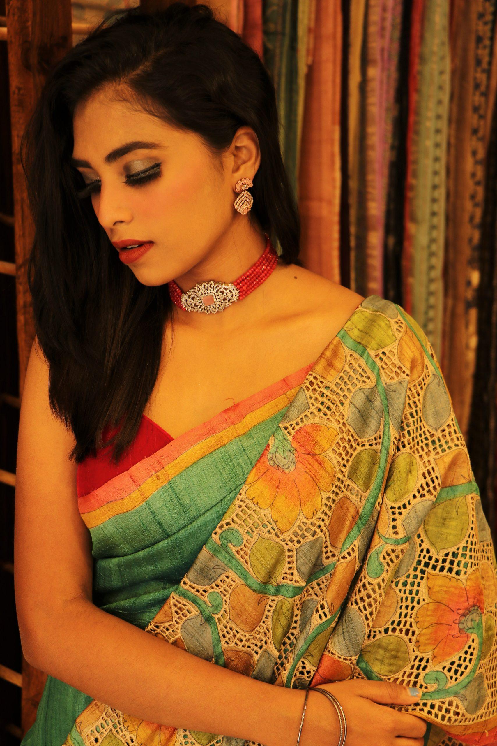 Tussar Batik Kalamkari Cutwork