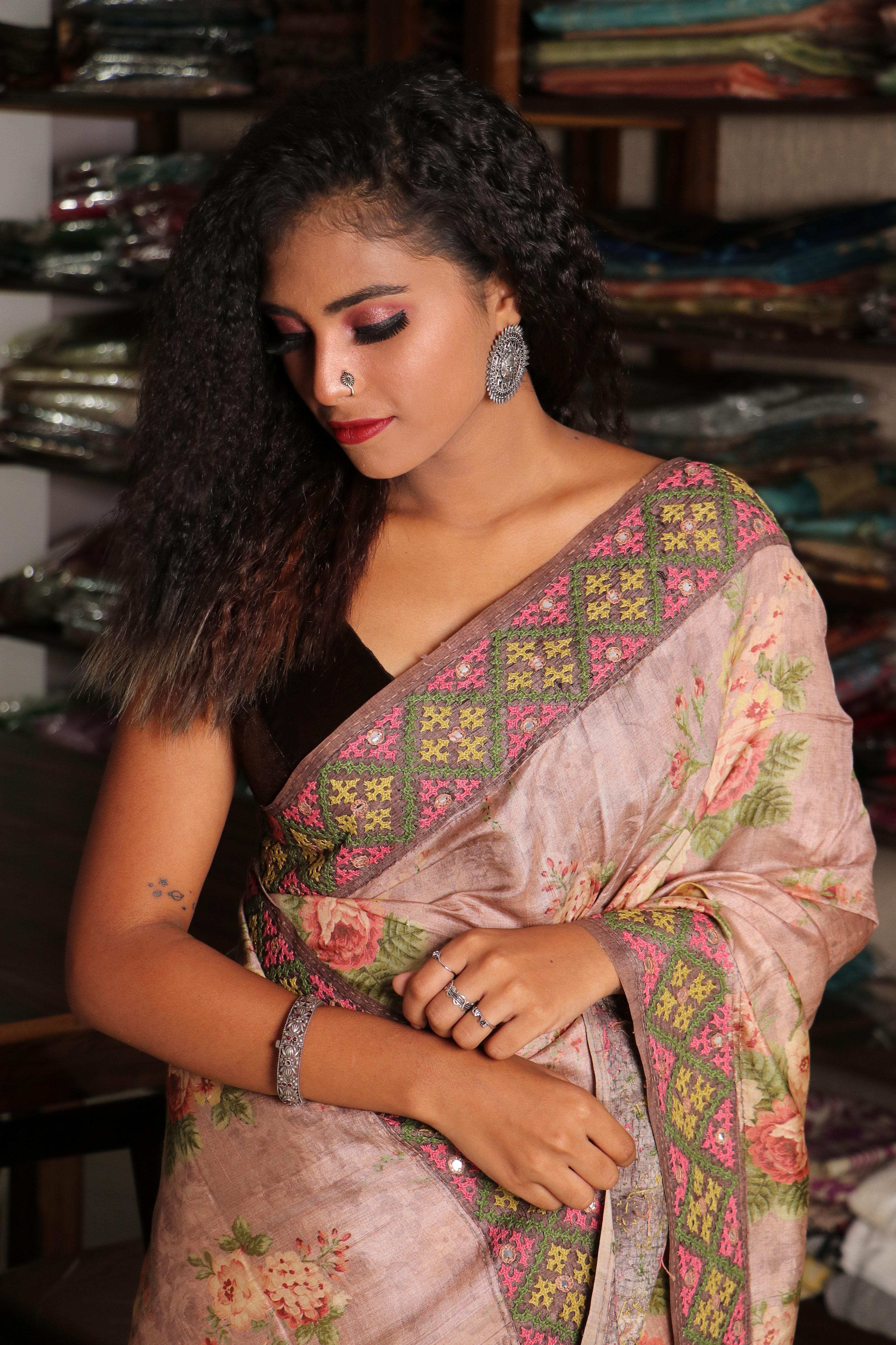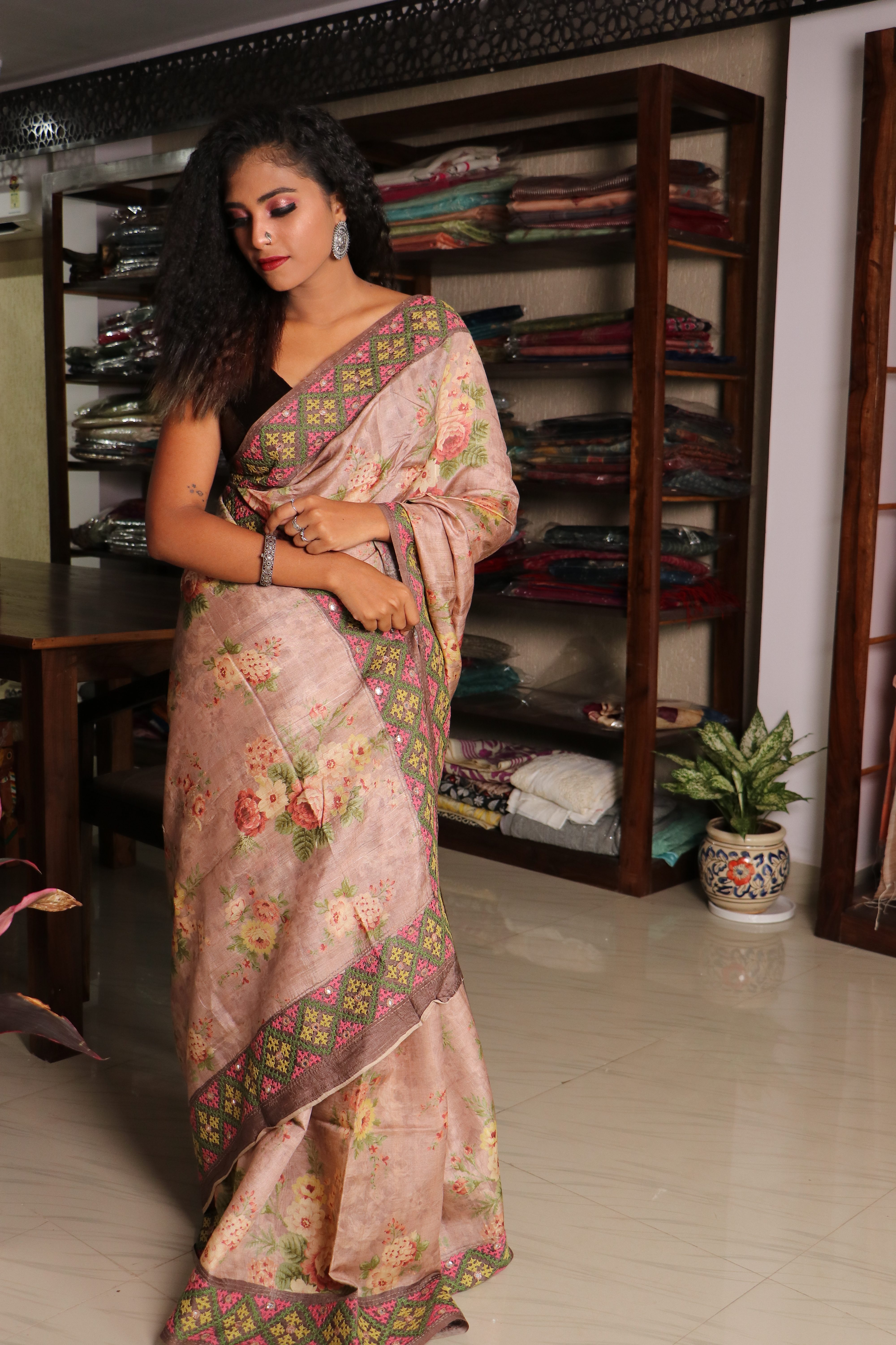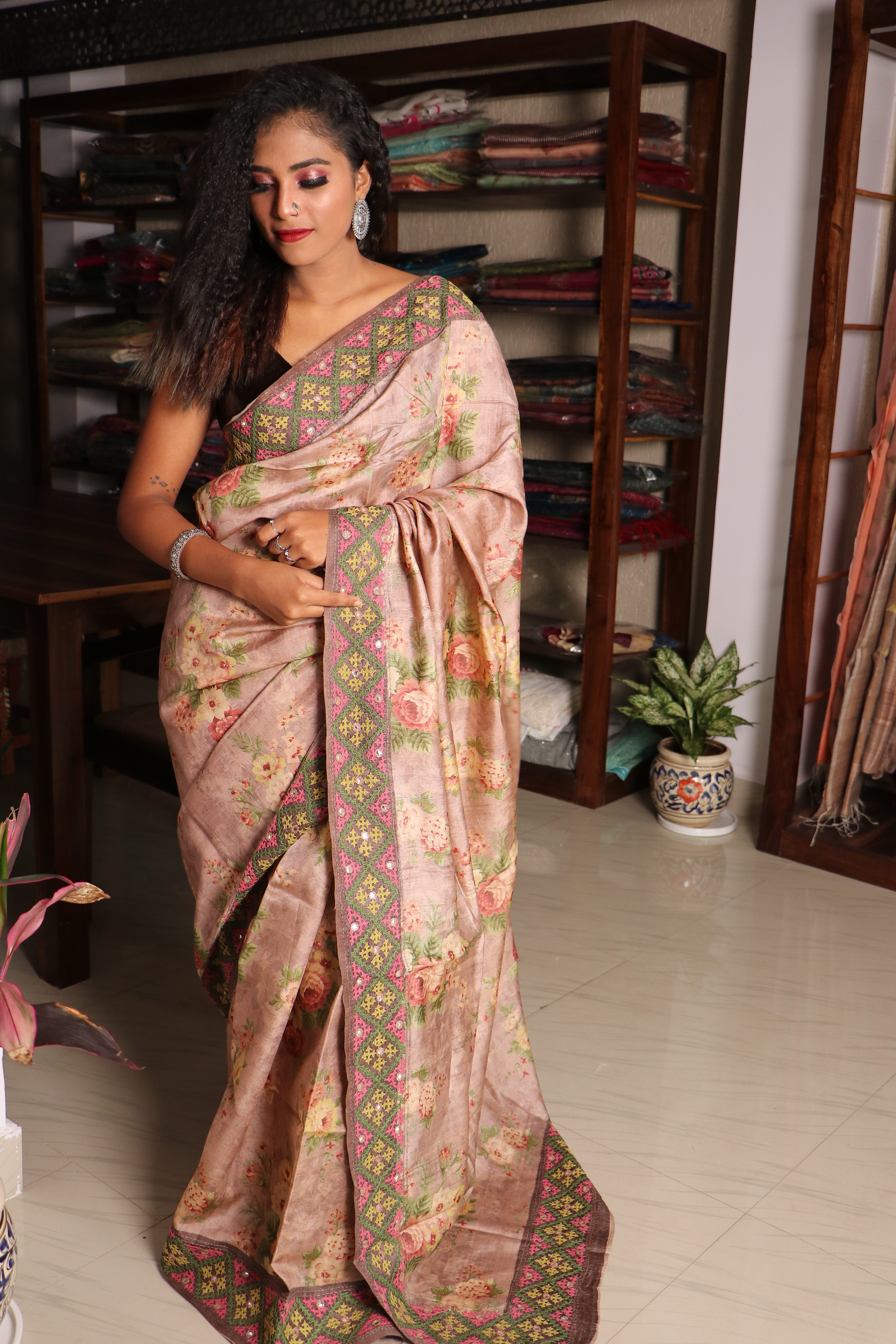 TUSSAR FLORAL KUTCH WORK Saree