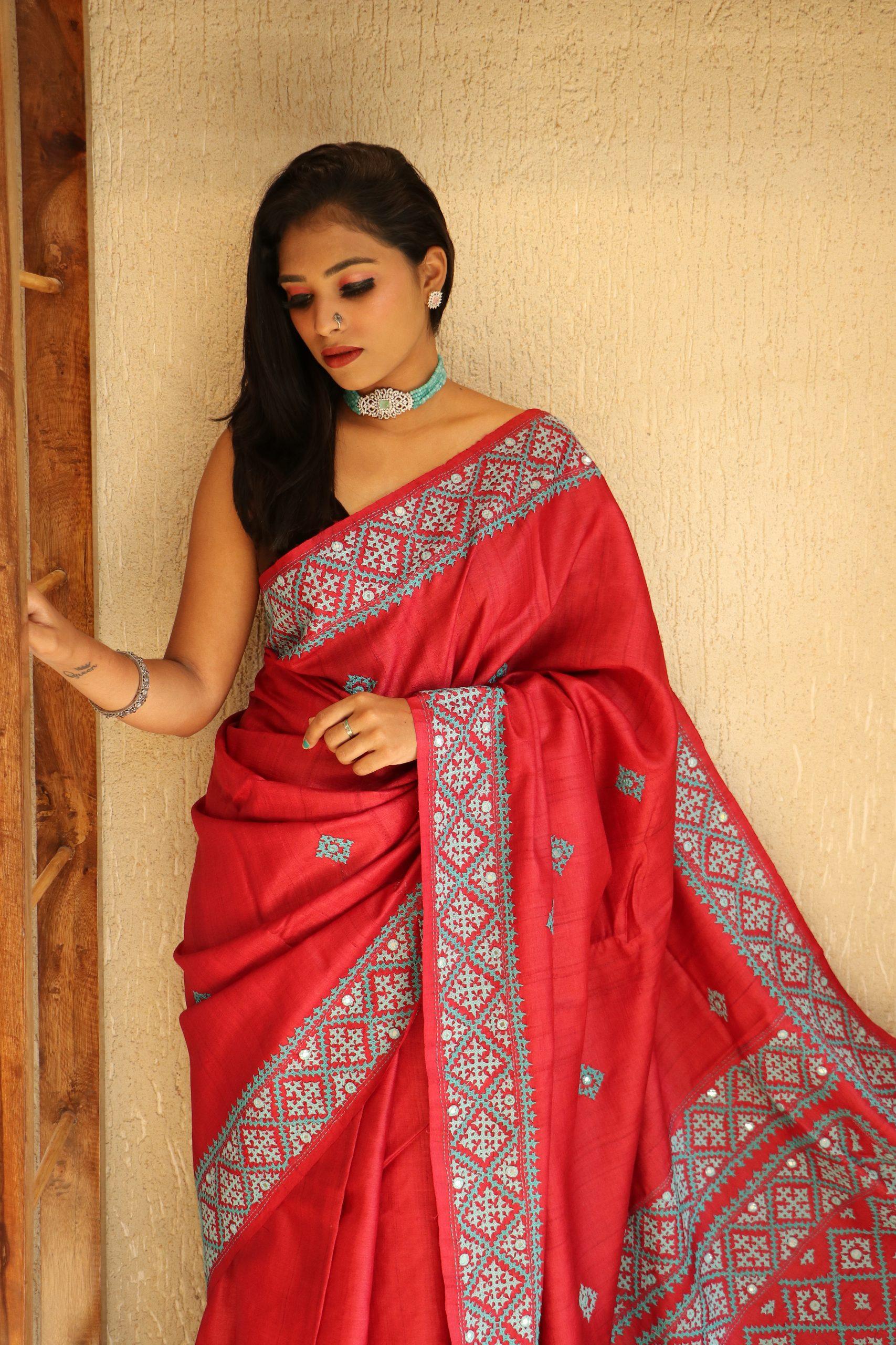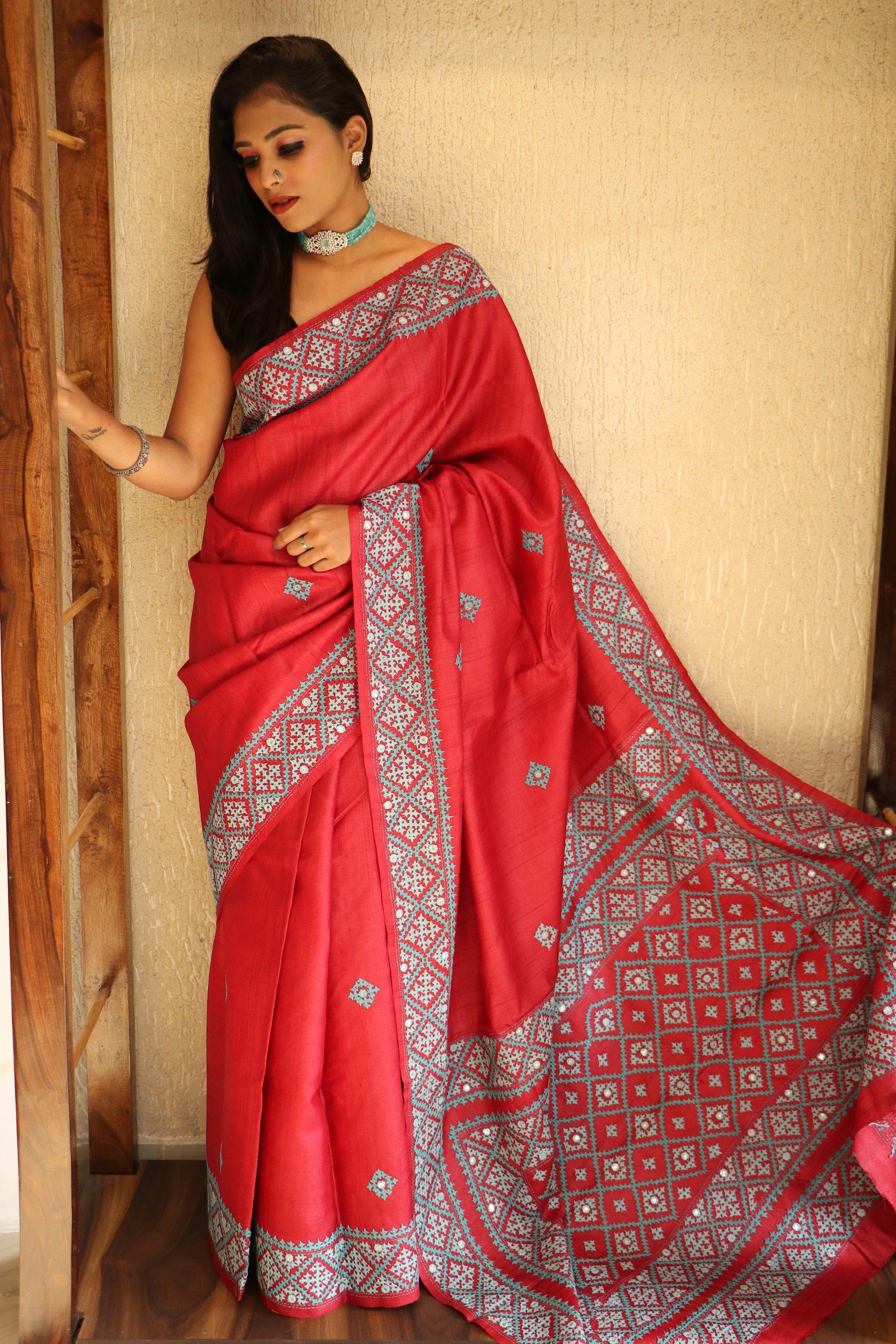 Hand work Kutch Work Patola tussar Pen Kalamkari Tussar silk