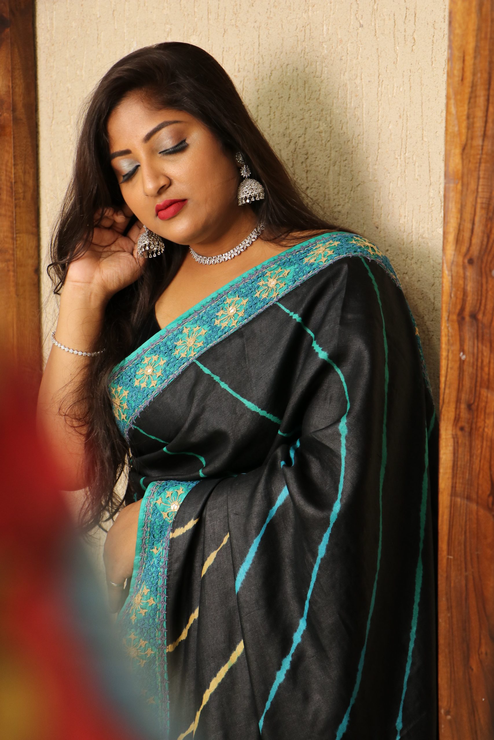 Bandhani Tussar with Petit Point work
