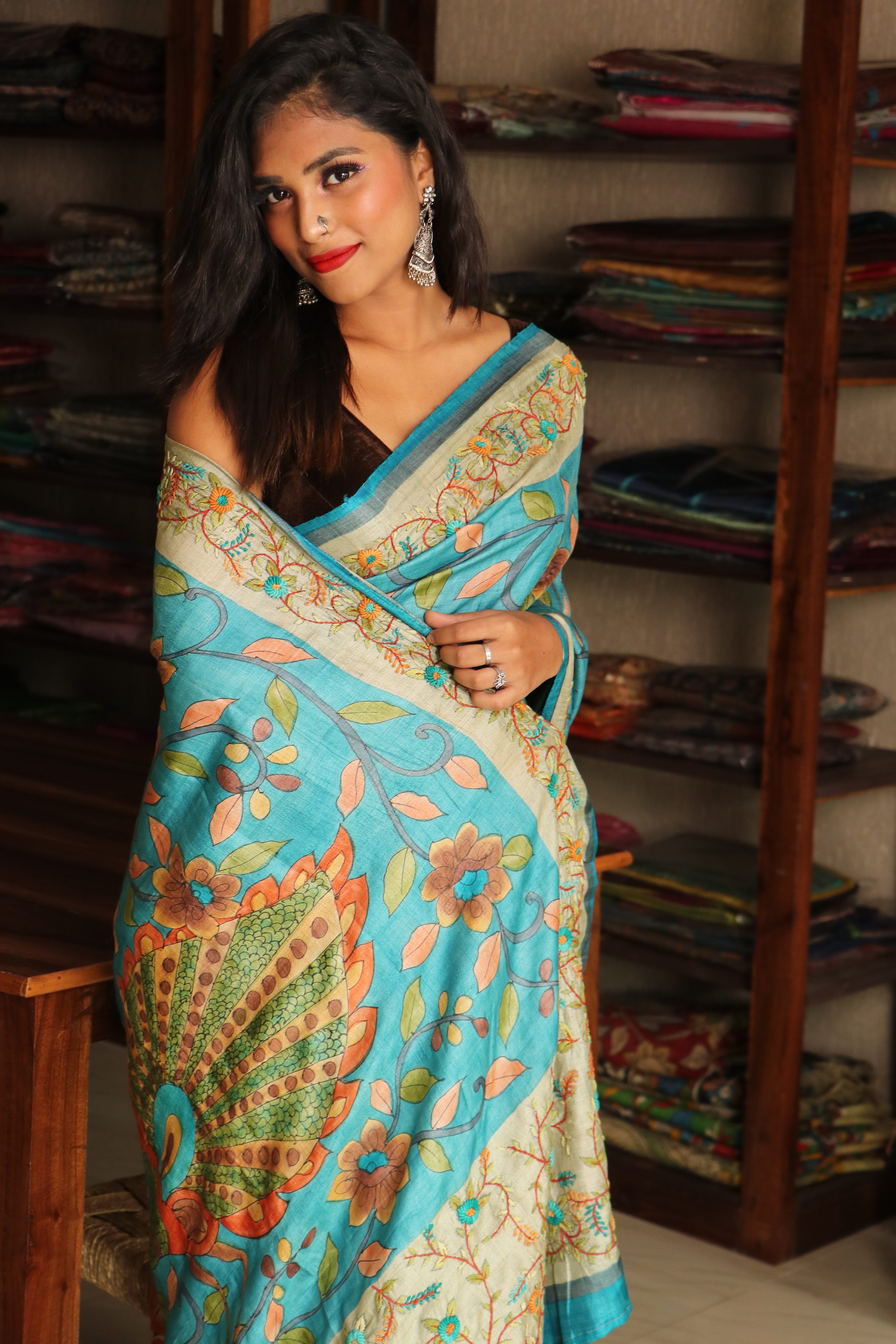 TUSSAR Pen Kalamkari with Needle Knot Work