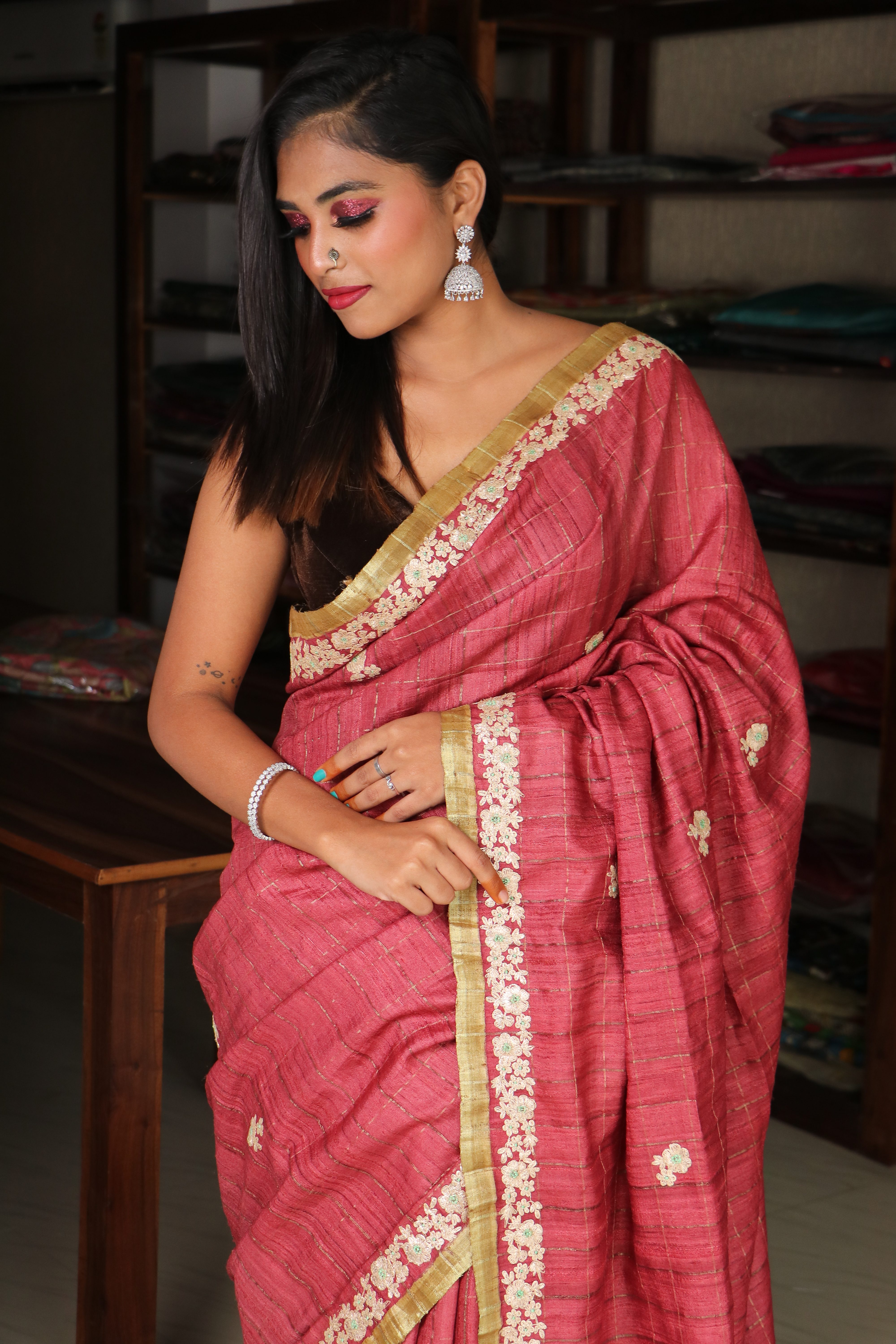 Absolutely Stunning TUSSAR PITA WORK WITH PEN KALAMKARI SAREE