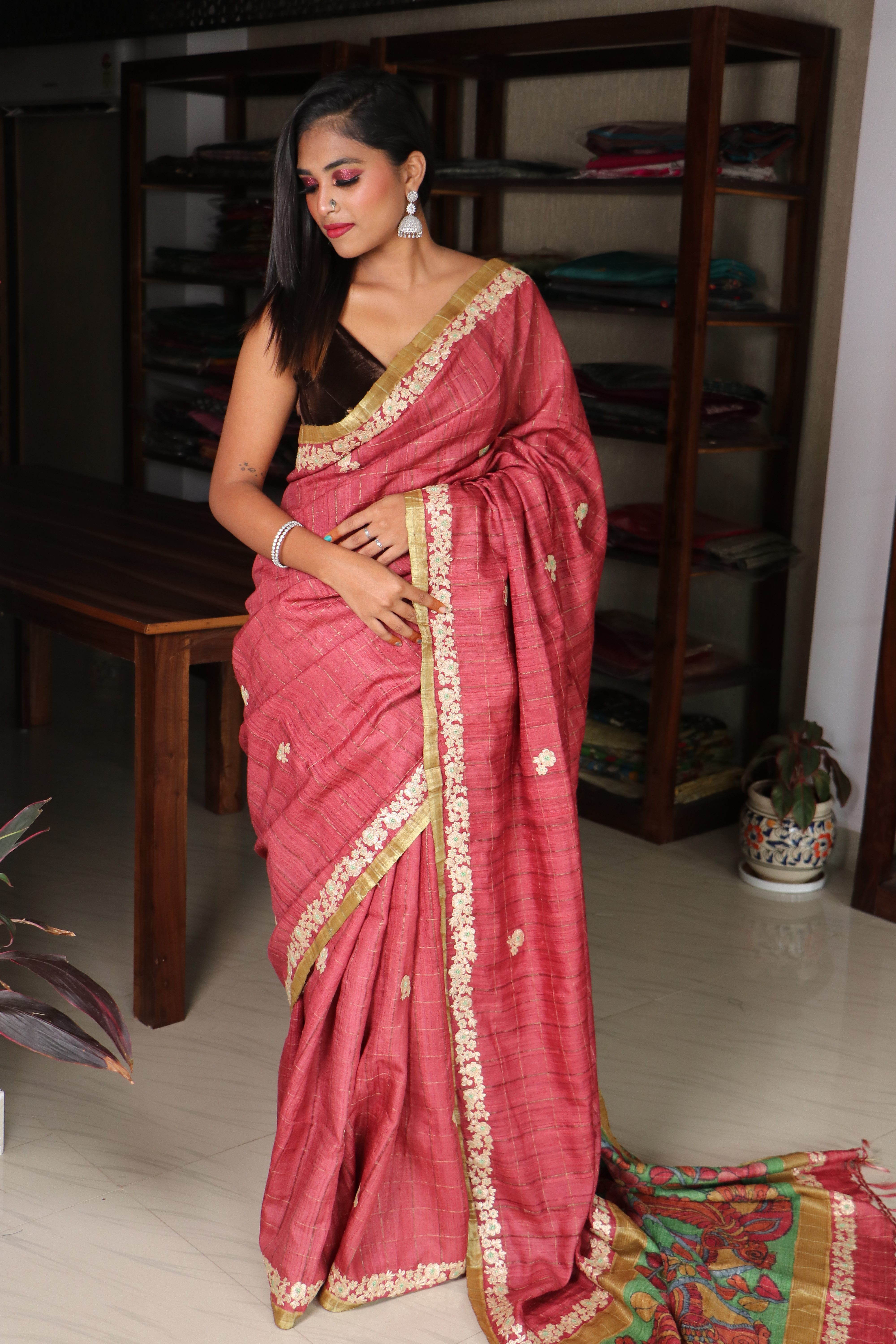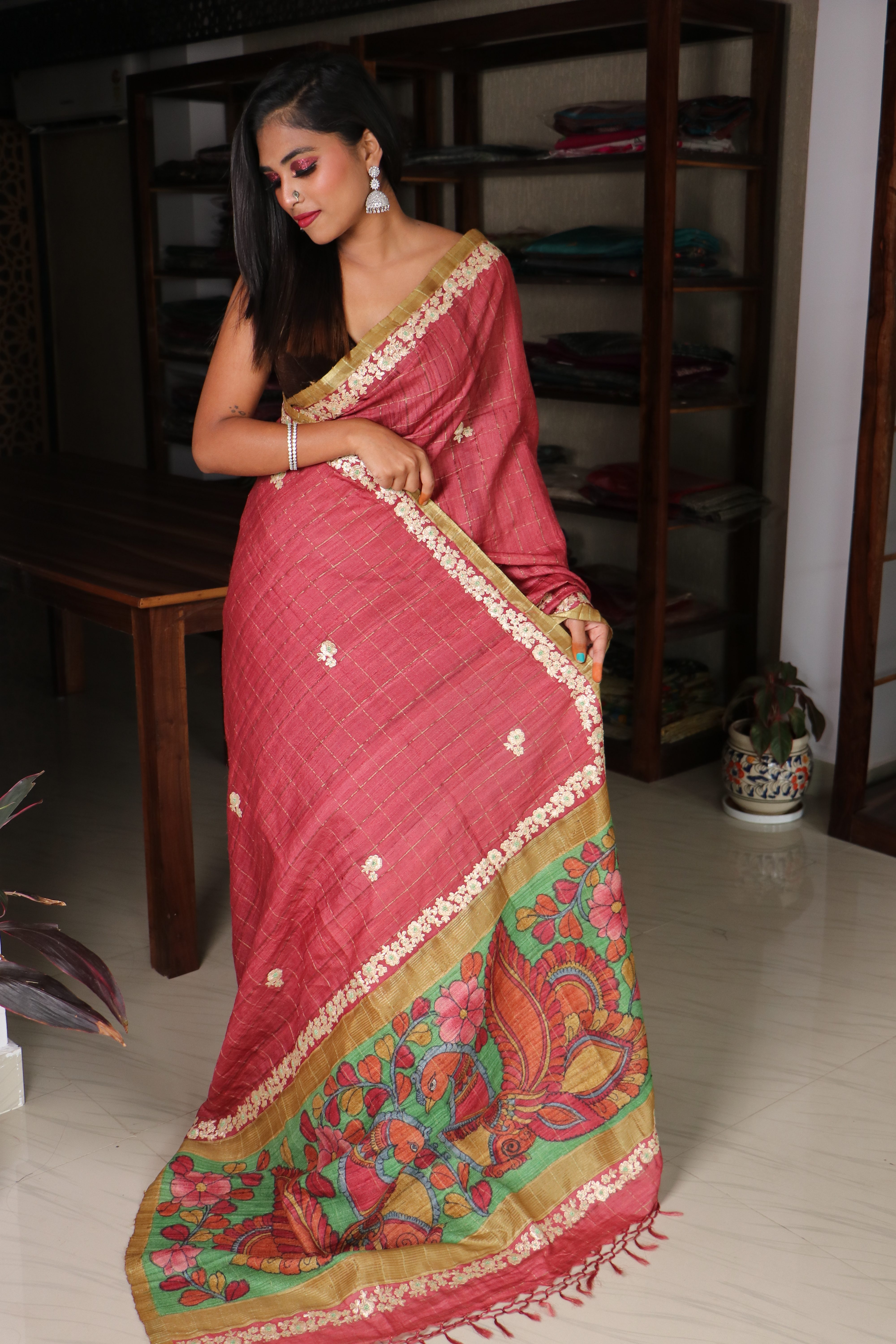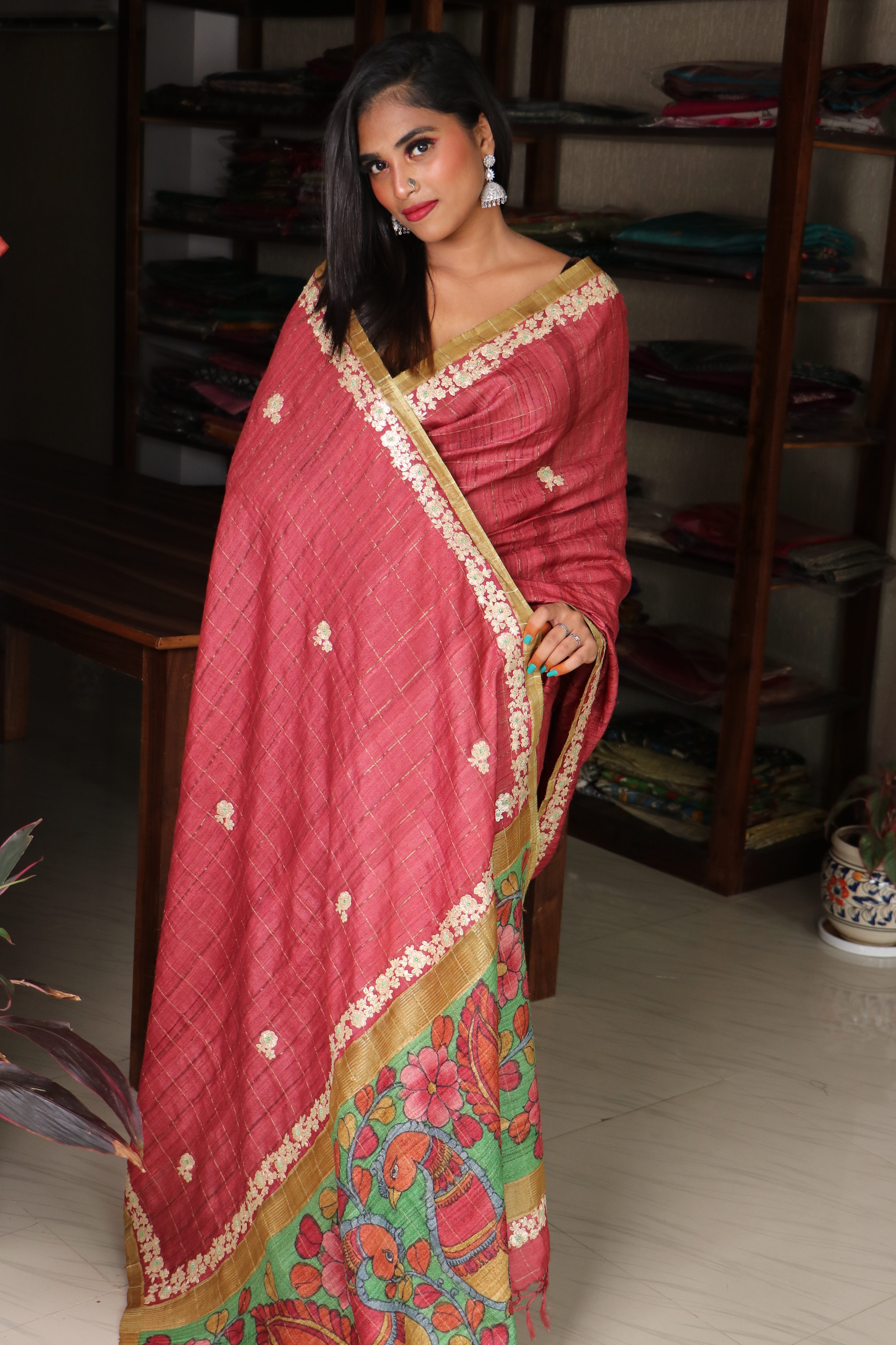TUSSAR PITA WORK PEN KALAMKARI Saree