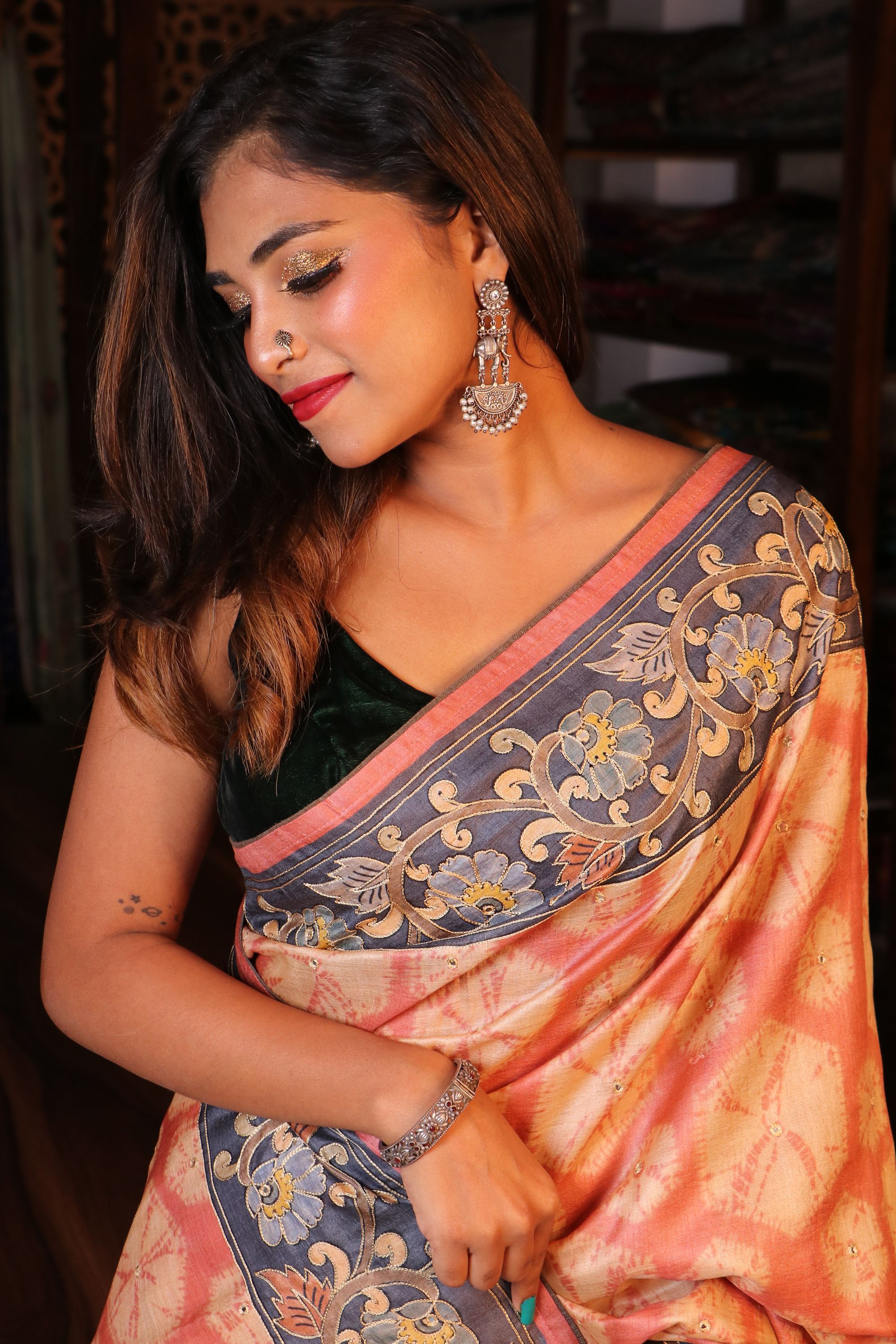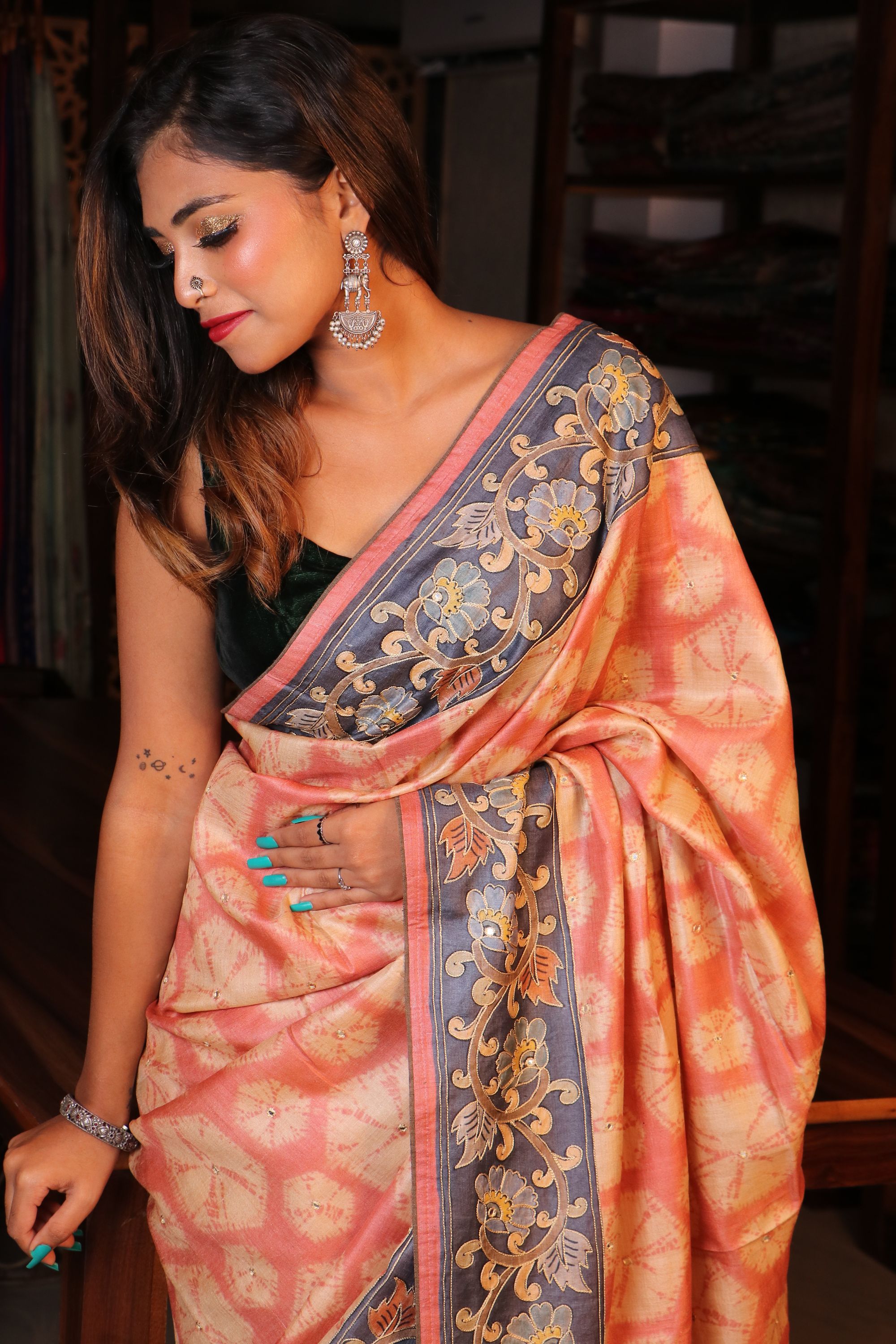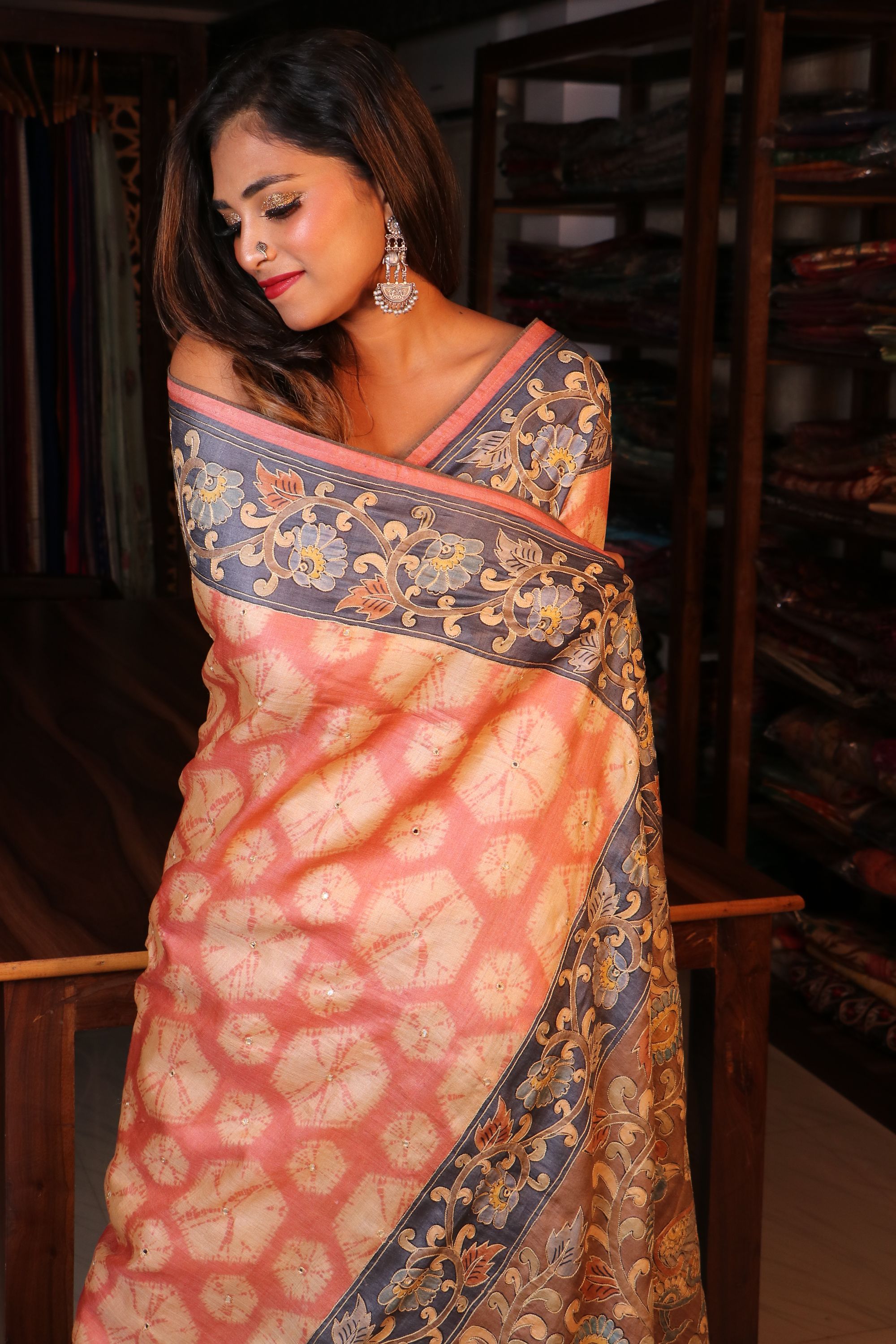 lehariya Kalamkari Tussar with Knot work