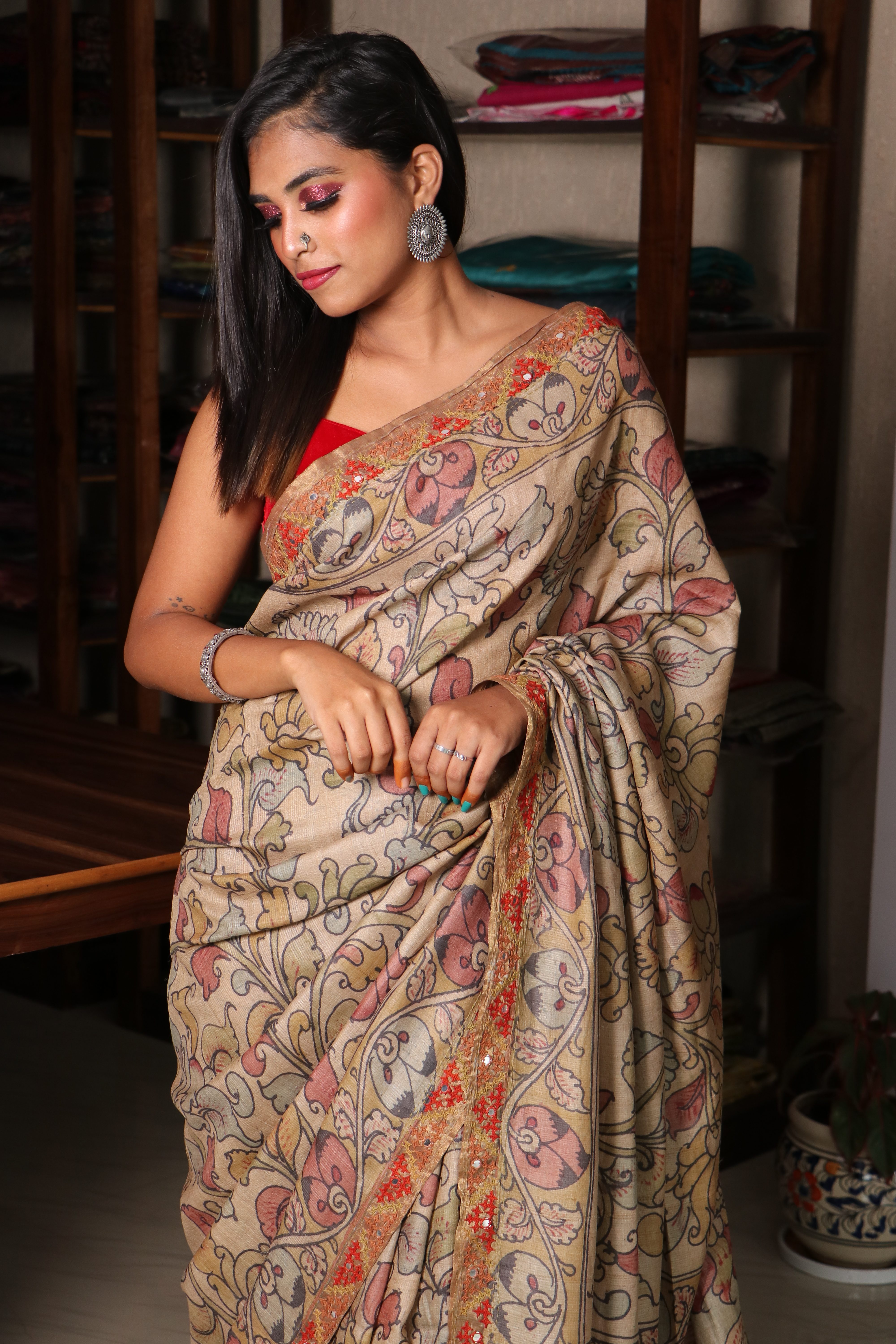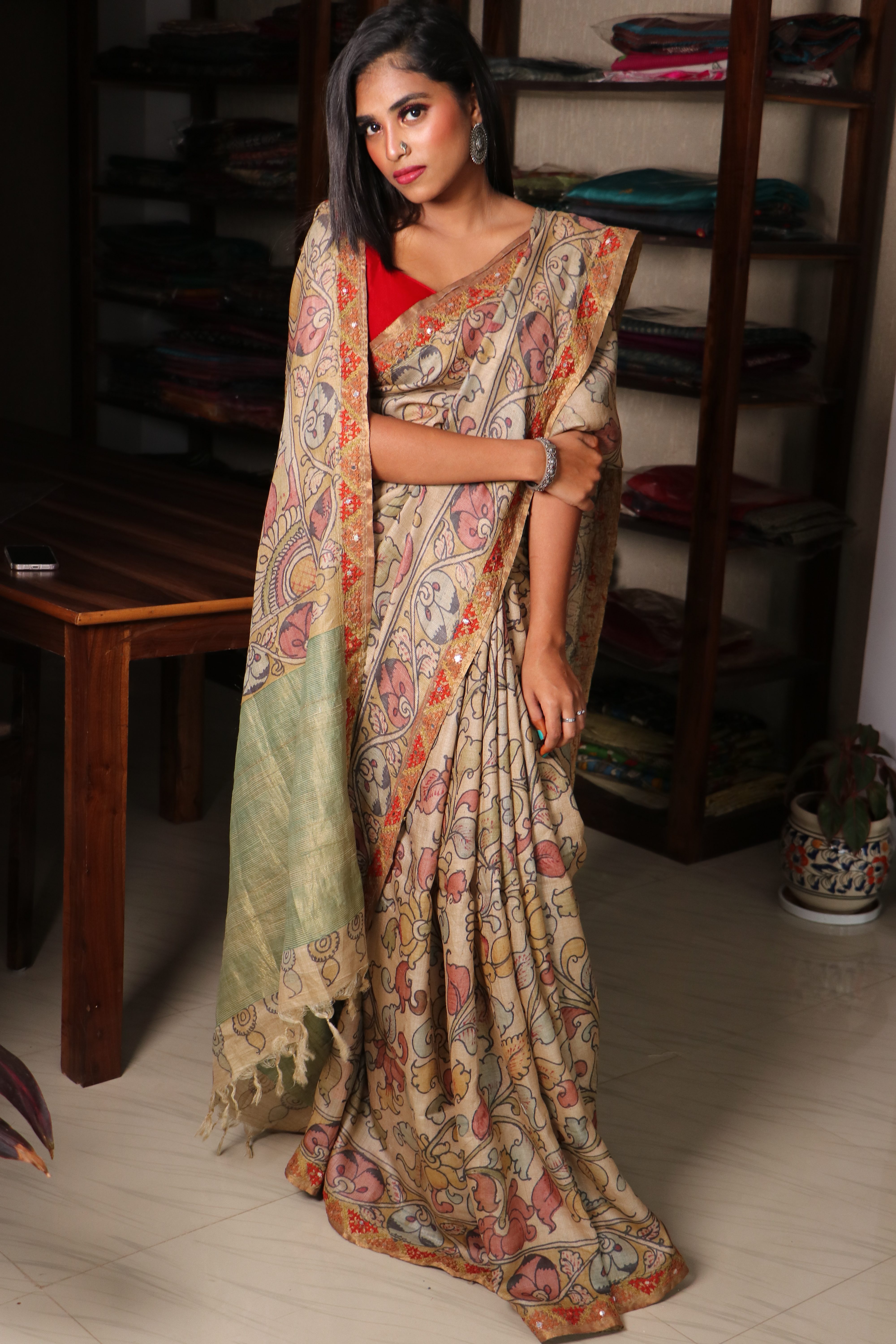 Hand Kalamkari Tussar with Kutch work