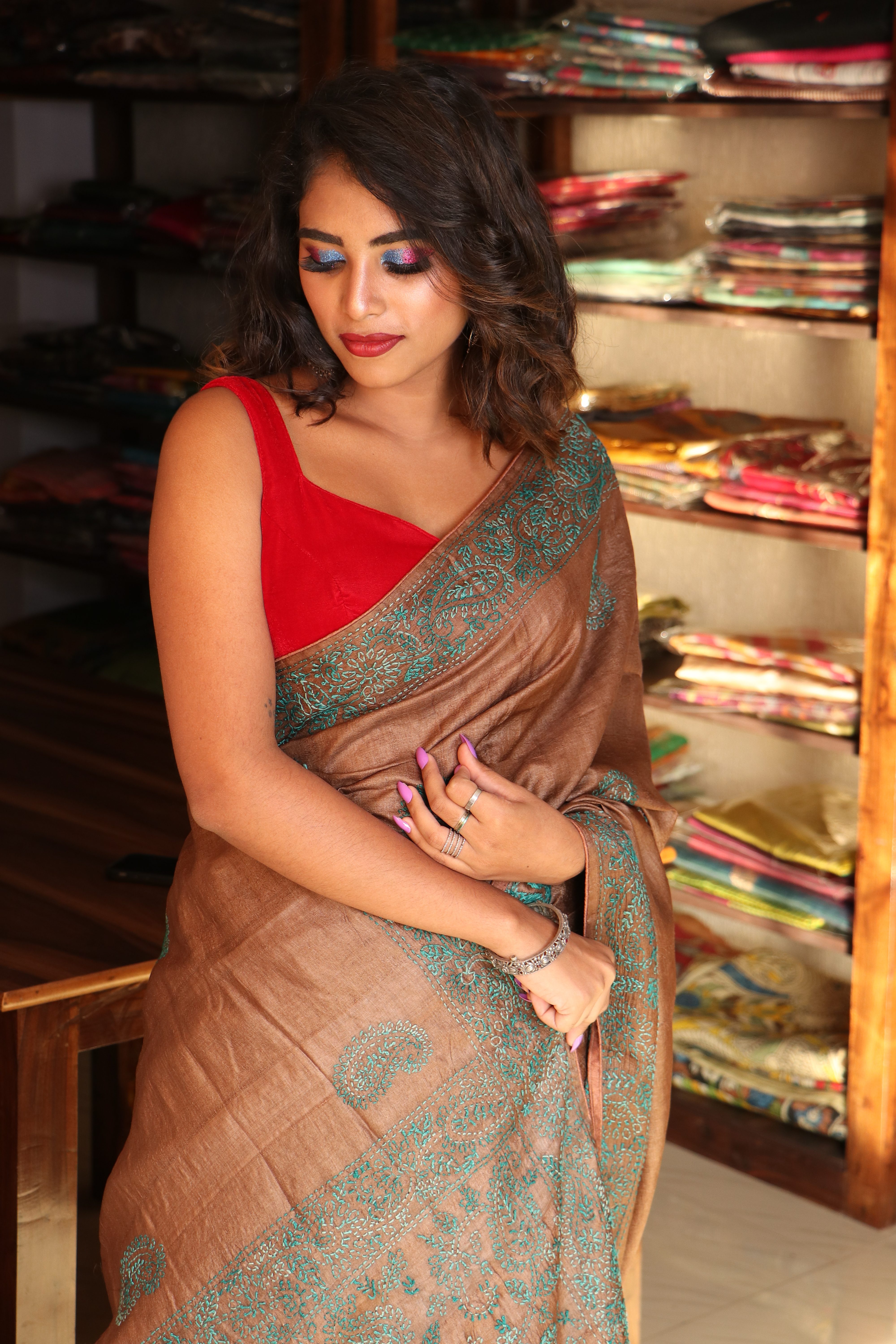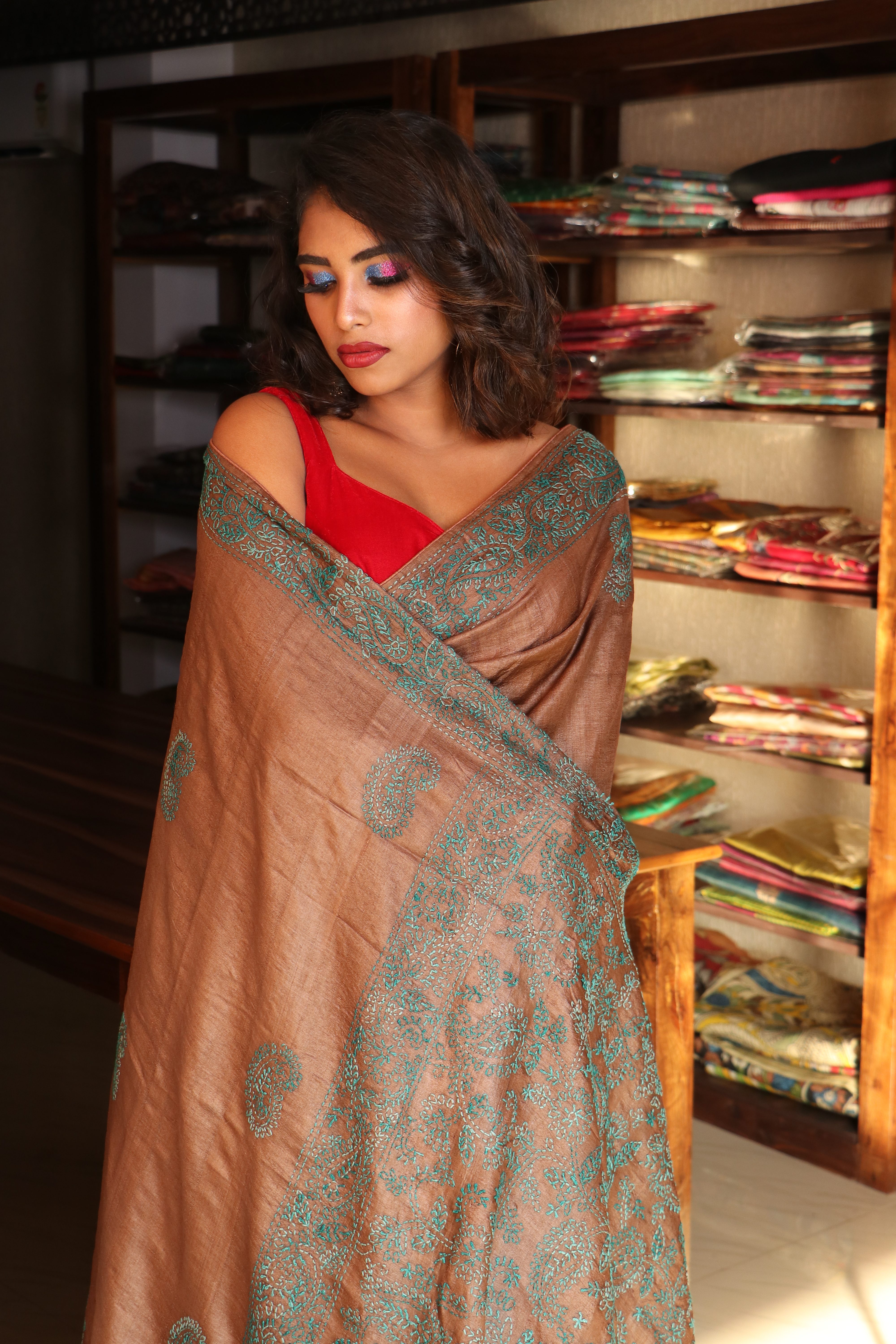 Absolutely Stunning Tussar Silk with Hand Chikankari(Needle) work