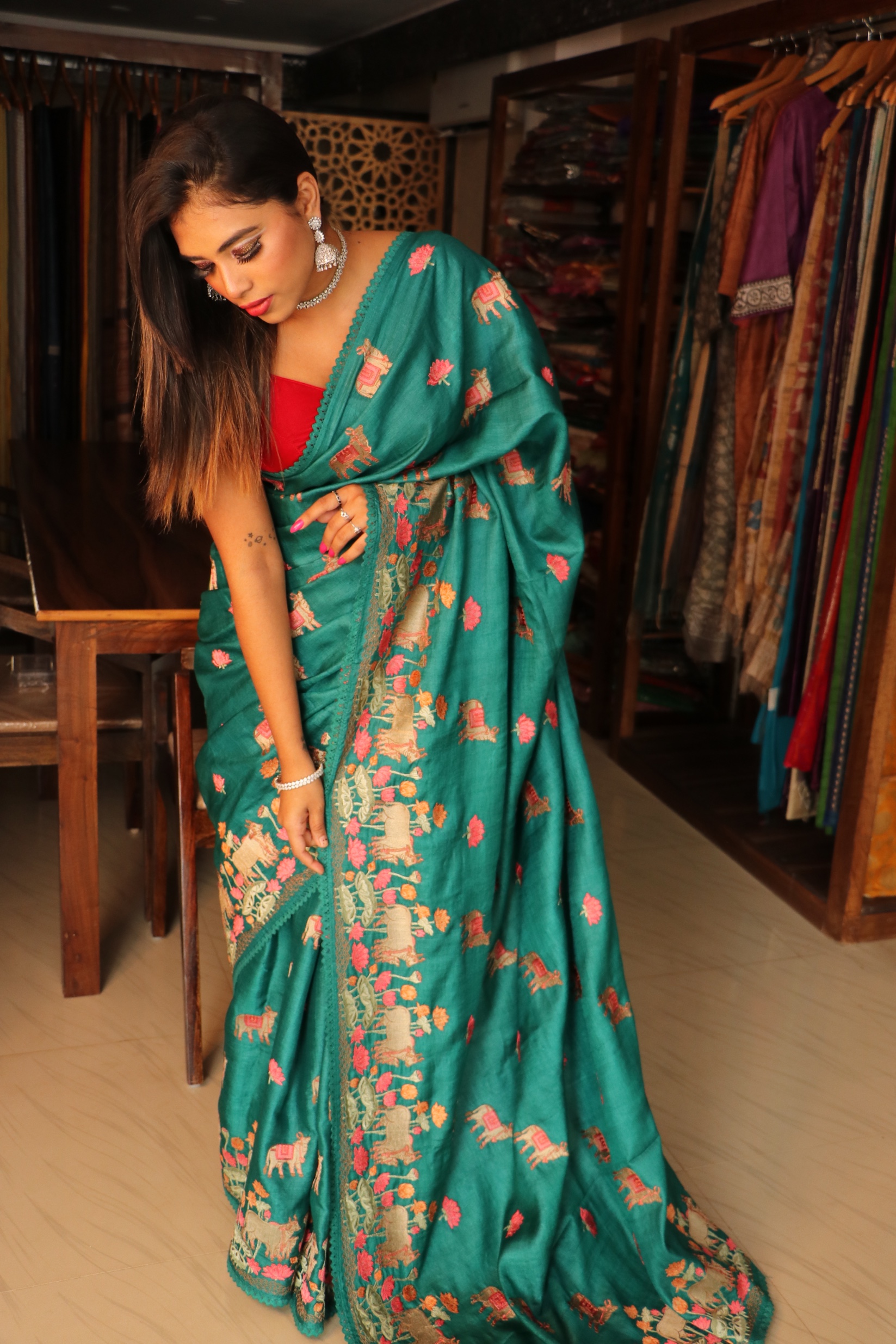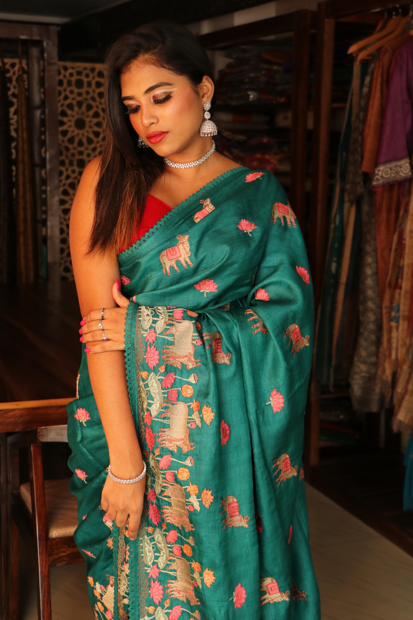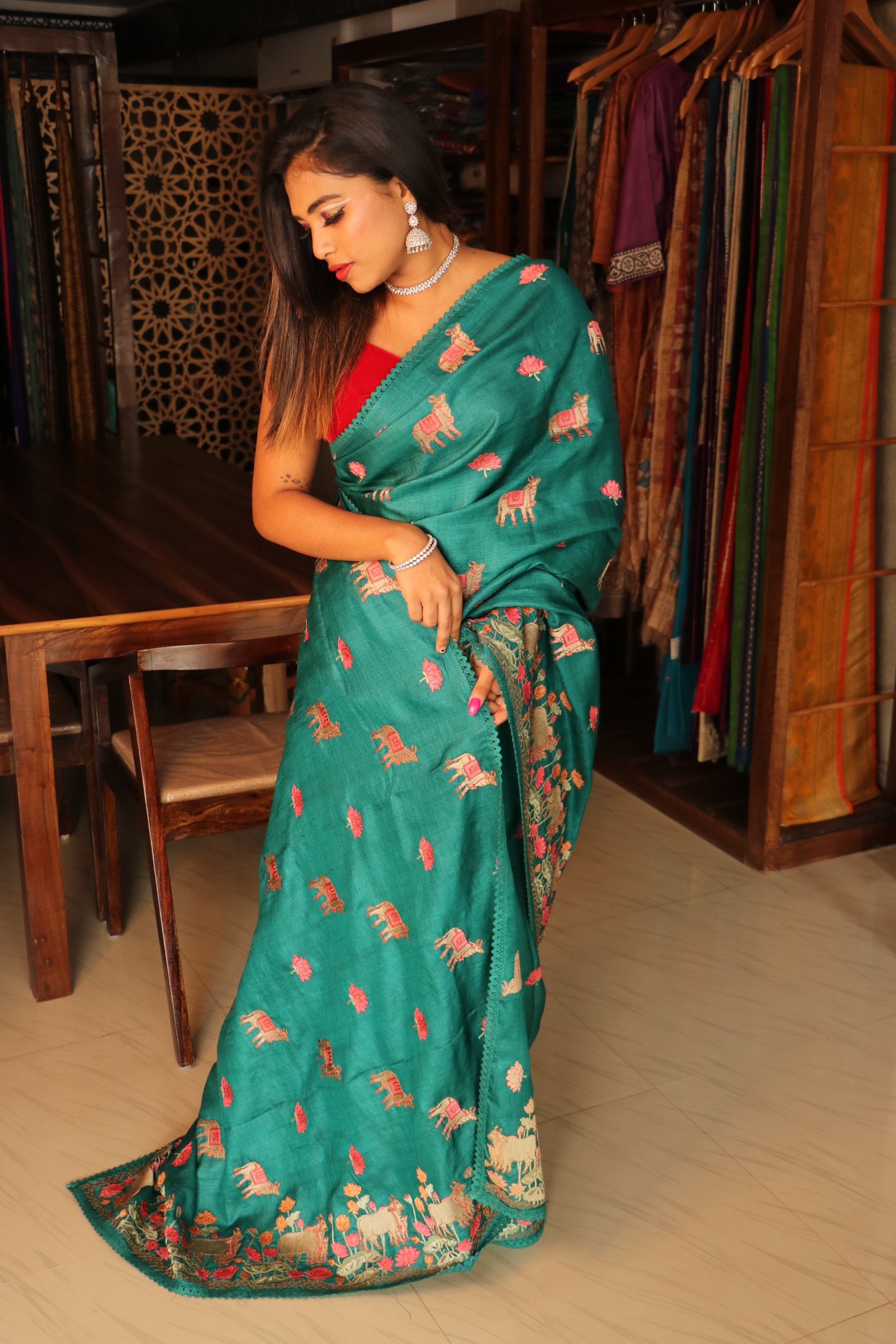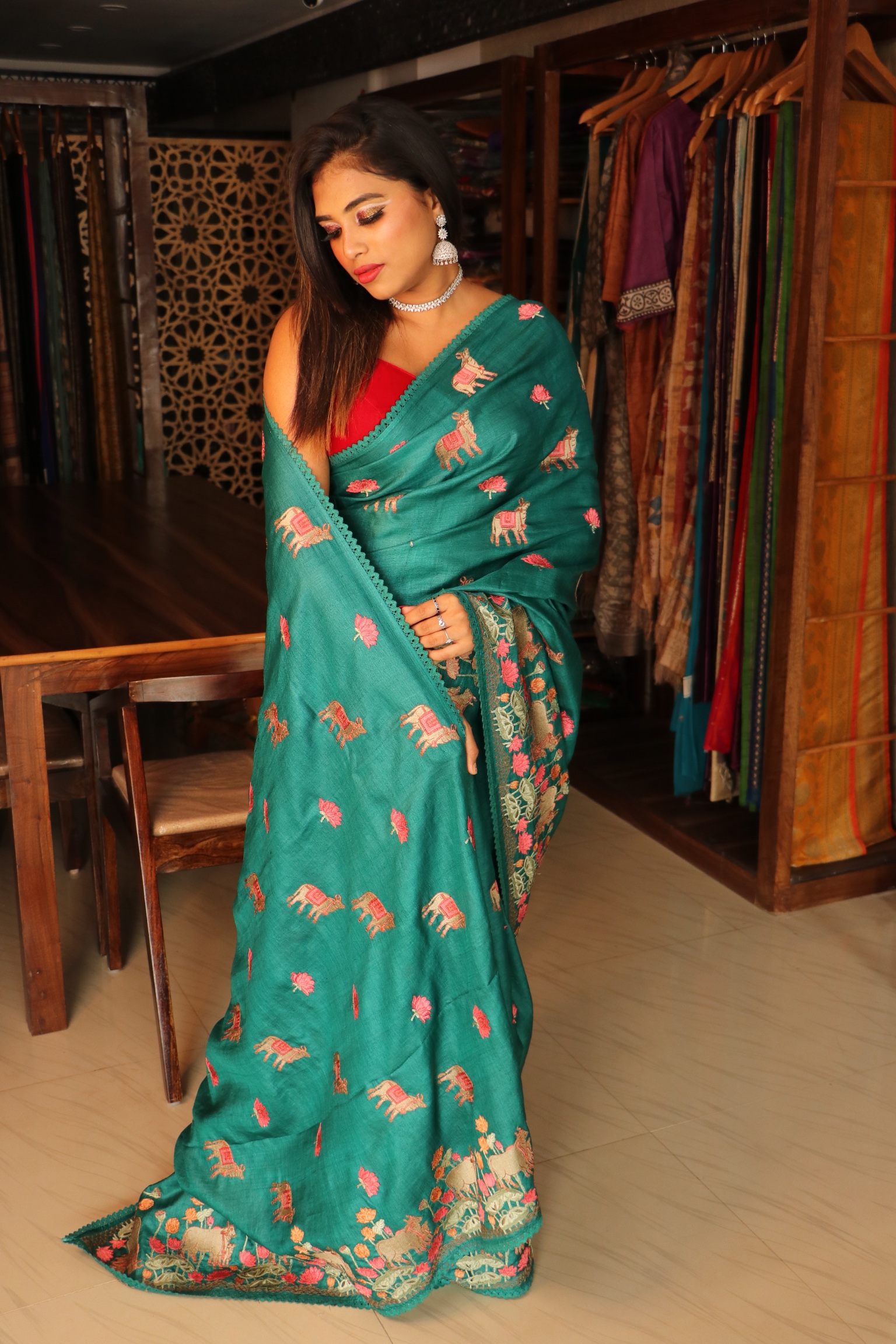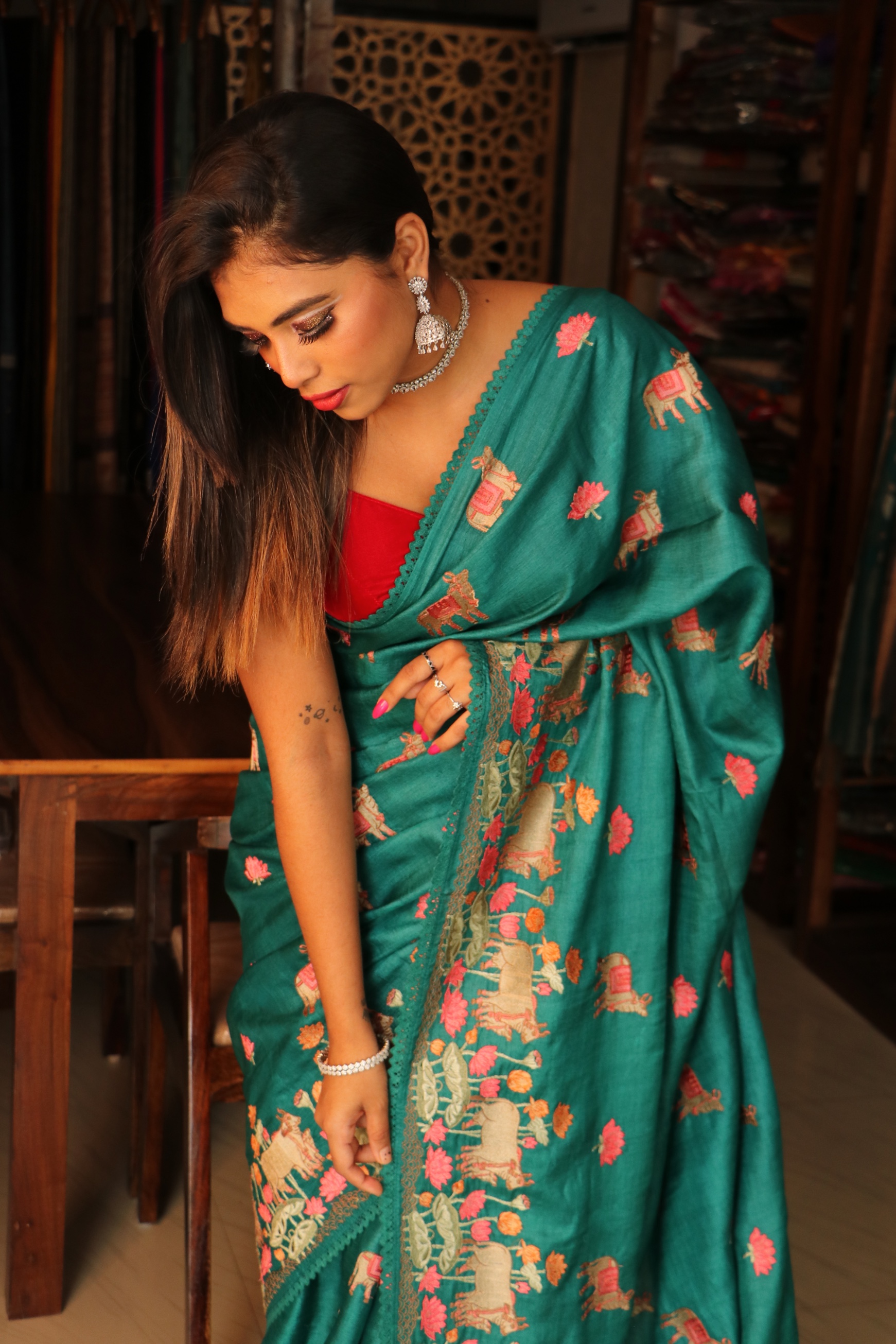 Hand work Kutch Work Patola tussar Pen Kalamkari Tussar silk