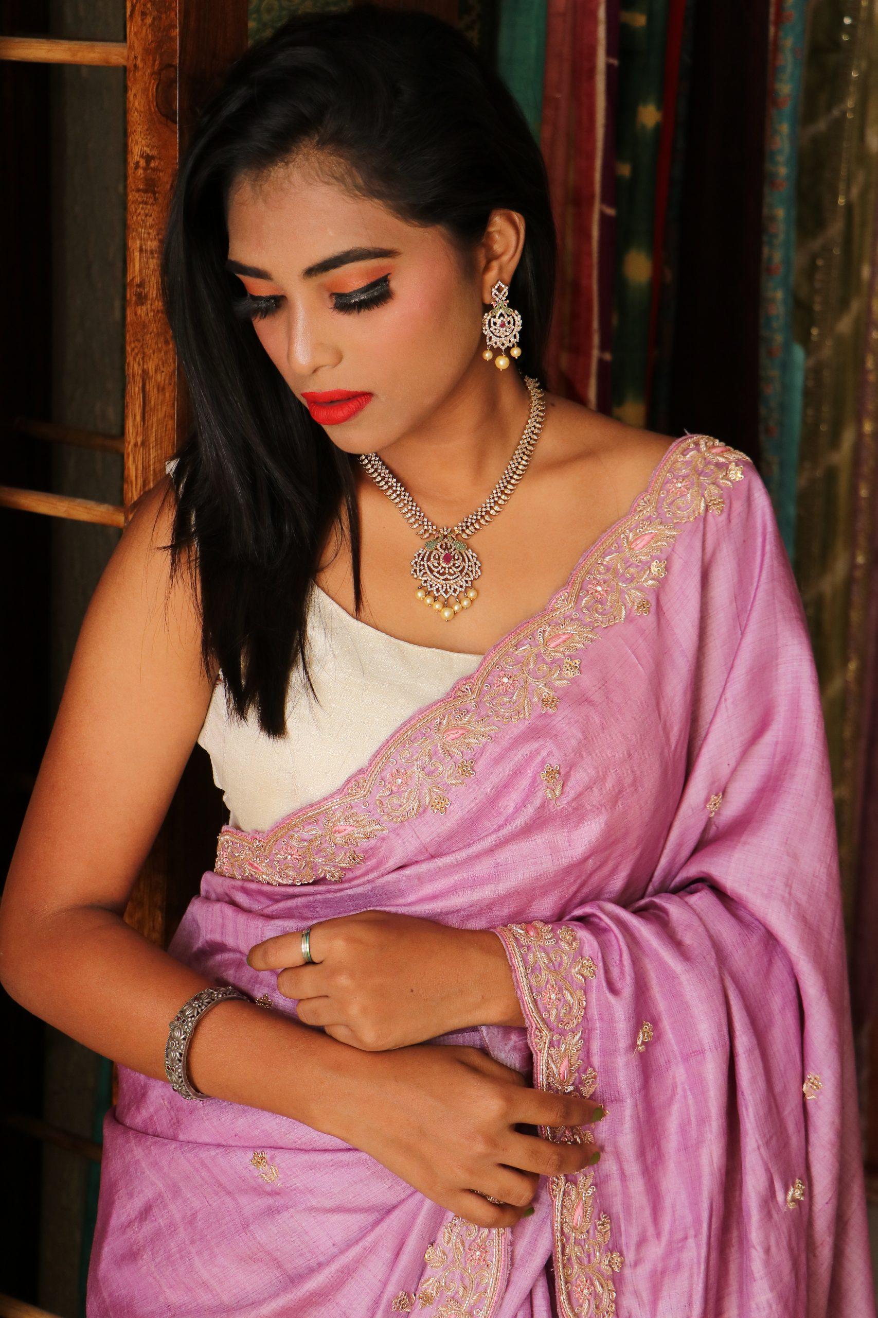 Bandhani Tussar with Petit Point work